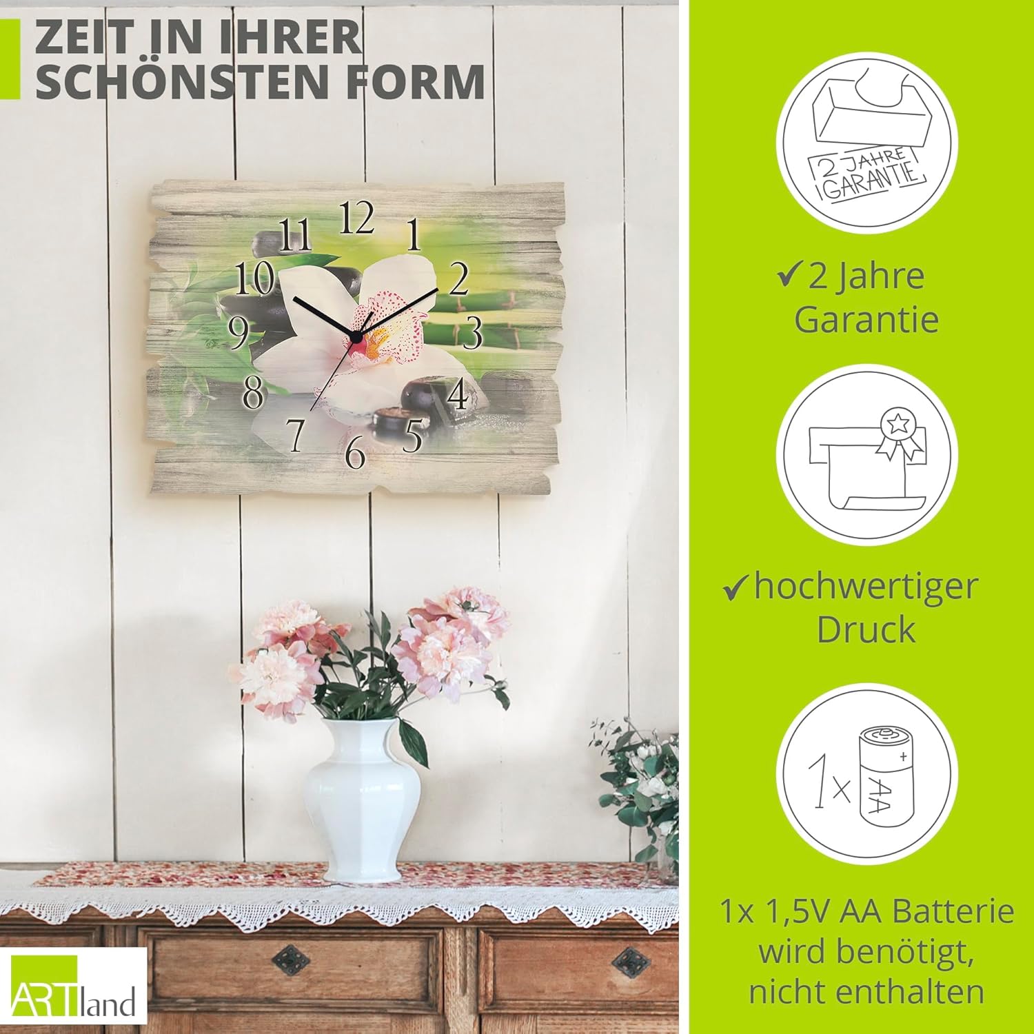 - DRUCKQUALITÄT: Die Wanduhr aus Holz ist vorderseitig mit UV-beständigen Farben bedruckt, die nicht nur für das beste Druckergebnis sorgen, sondern auch geruchlos sind