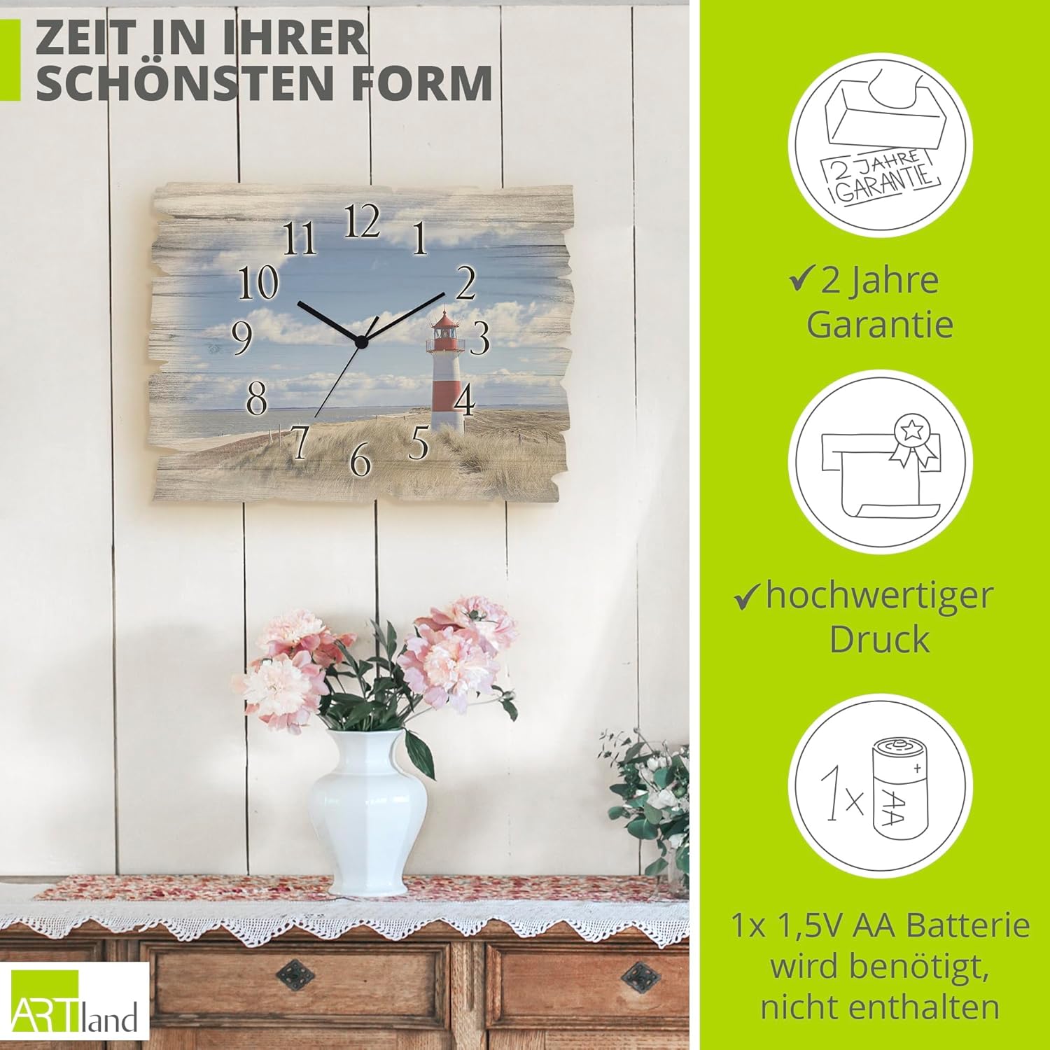 - UHRWERK: Das geräuschlose Uhrwerk läuft ohne Ticken. Nicht nur leise, sondern geräuschlos! Somit auch als Schlafzimmer Deko geeignet. Hinweis: 1x 1,5V AA Batterie wird benötigt (nicht enthalten)