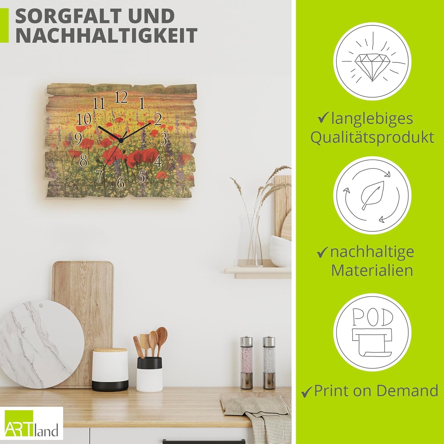 - DRUCKQUALITÄT: Die Wanduhr aus Holz ist vorderseitig mit UV-beständigen Farben bedruckt, die nicht nur für das beste Druckergebnis sorgen, sondern auch geruchlos sind