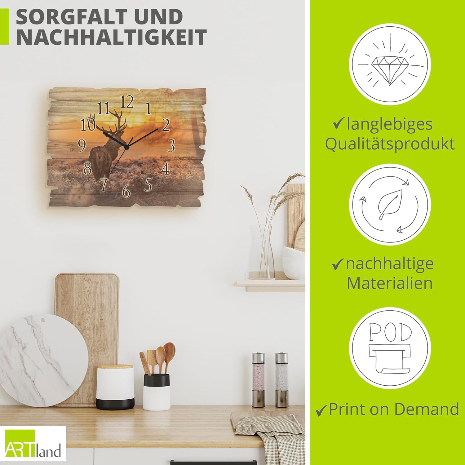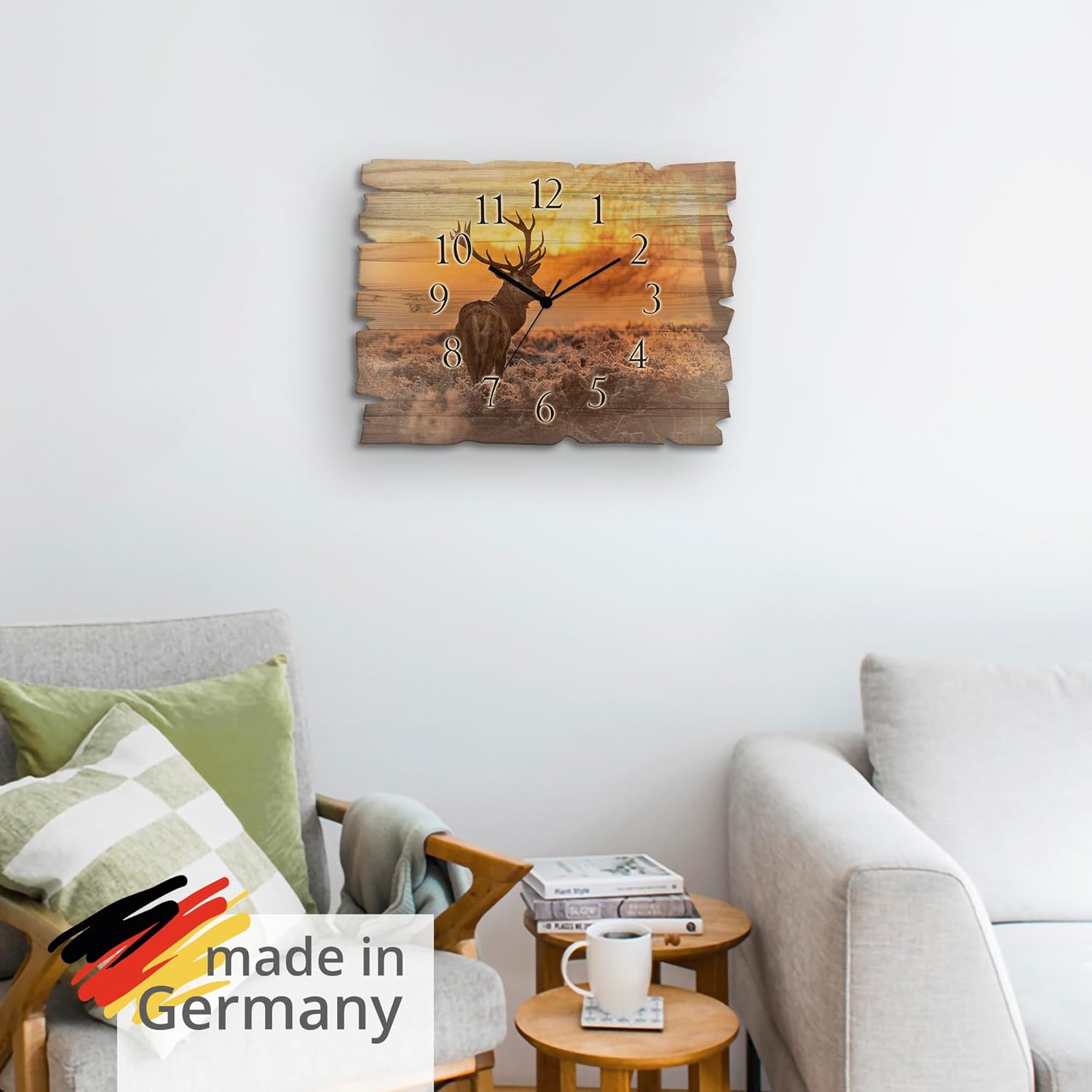 • DRUCKQUALITÄT: Die Wanduhr aus Holz ist vorderseitig mit UV-beständigen Farben bedruckt, die nicht nur für das beste Druckergebnis sorgen, sondern auch geruchlos sind