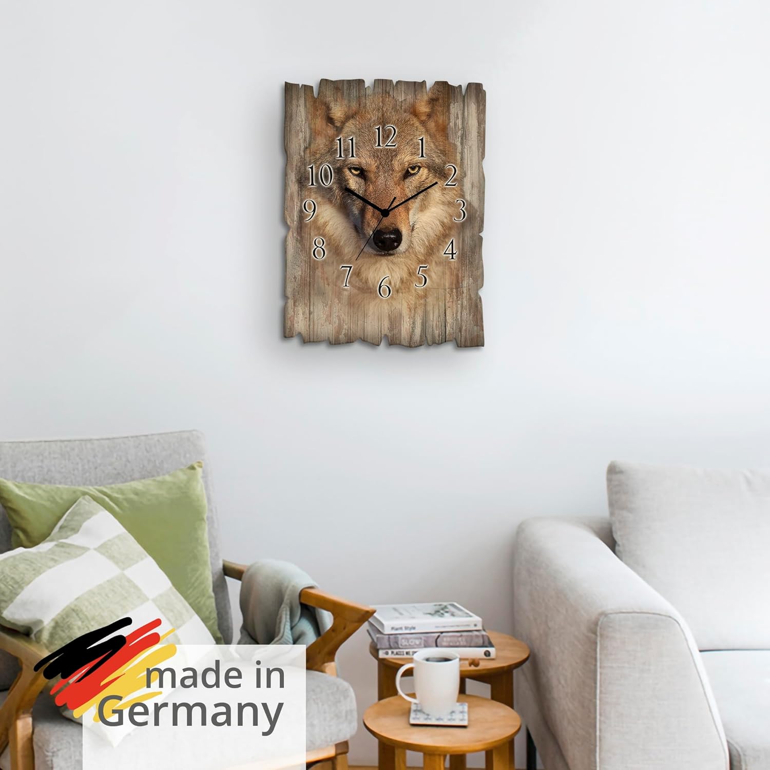 • DRUCKQUALITÄT: Die Wanduhr aus Holz ist vorderseitig mit UV-beständigen Farben bedruckt, die nicht nur für das beste Druckergebnis sorgen, sondern auch geruchlos sind