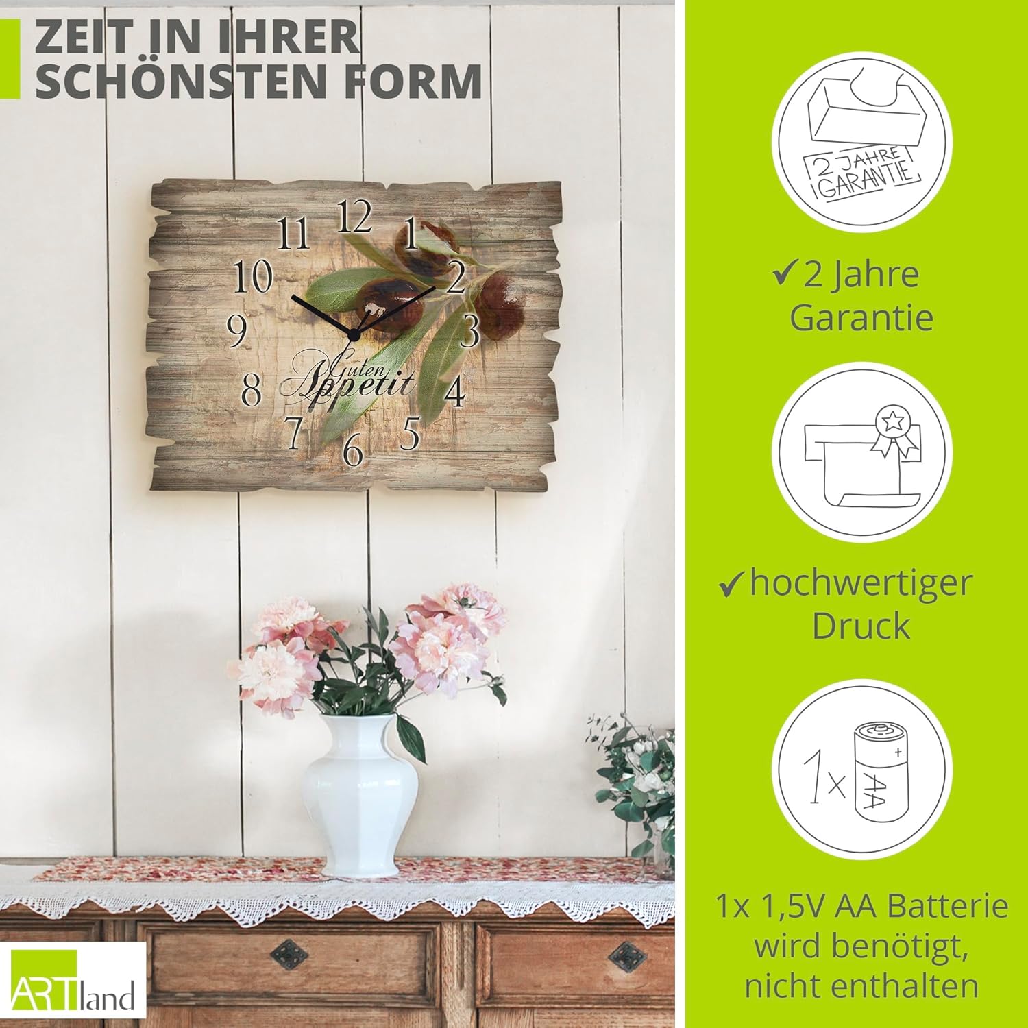 - UHRWERK: Das geräuschlose Uhrwerk läuft ohne Ticken. Nicht nur leise, sondern geräuschlos! Somit auch als Schlafzimmer Deko geeignet. Hinweis: 1x 1,5V AA Batterie wird benötigt (nicht enthalten)