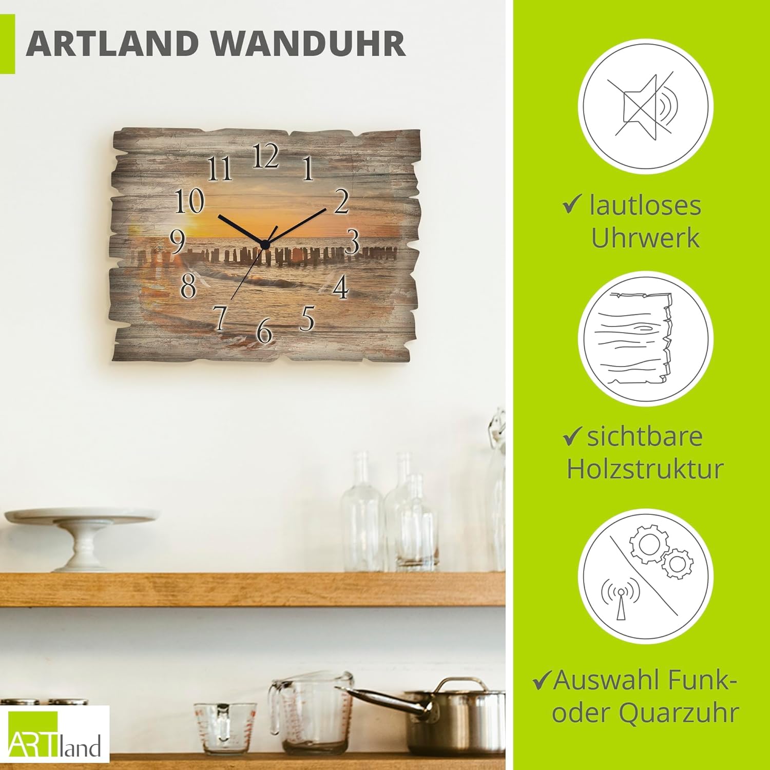 - DRUCKQUALITÄT: Die Wanduhr aus Holz ist vorderseitig mit UV-beständigen Farben bedruckt, die nicht nur für das beste Druckergebnis sorgen, sondern auch geruchlos sind