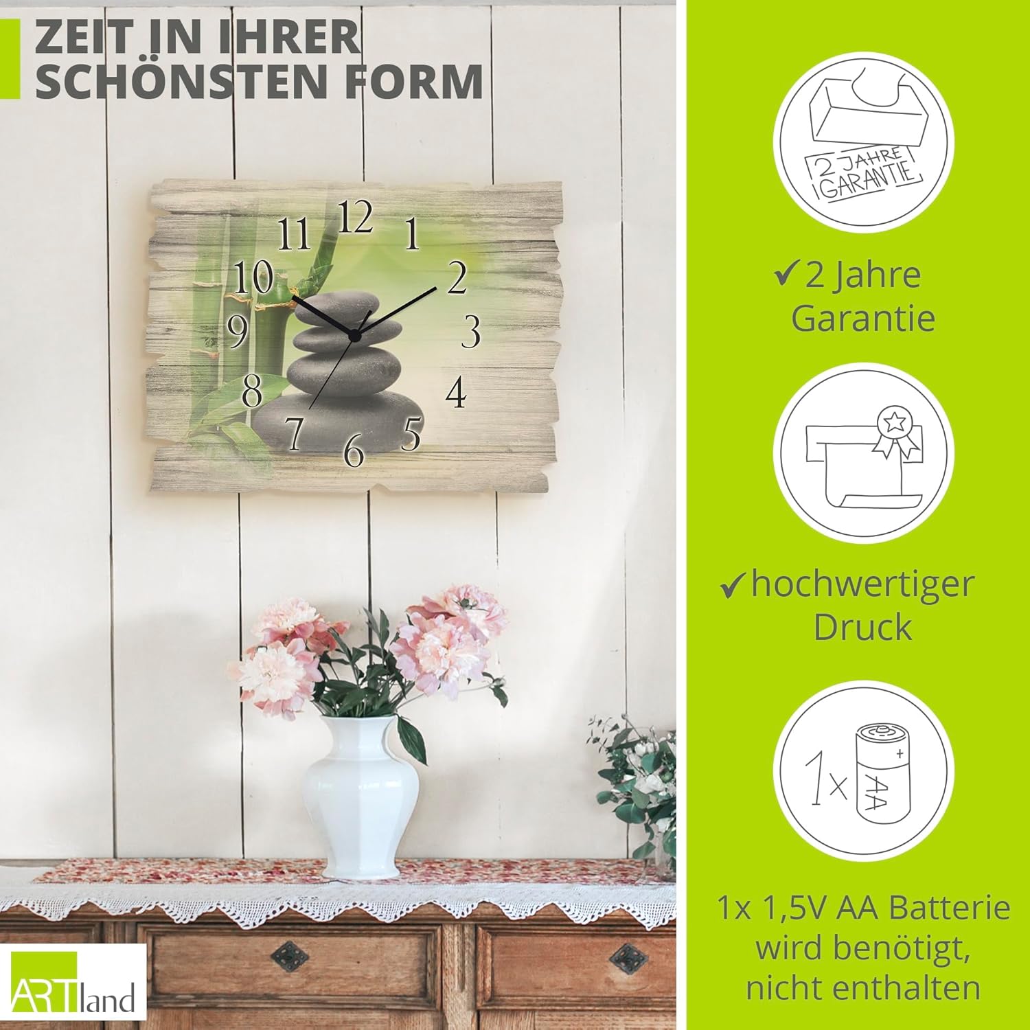 - DRUCKQUALITÄT: Die Wanduhr aus Holz ist vorderseitig mit UV-beständigen Farben bedruckt, die nicht nur für das beste Druckergebnis sorgen, sondern auch geruchlos sind