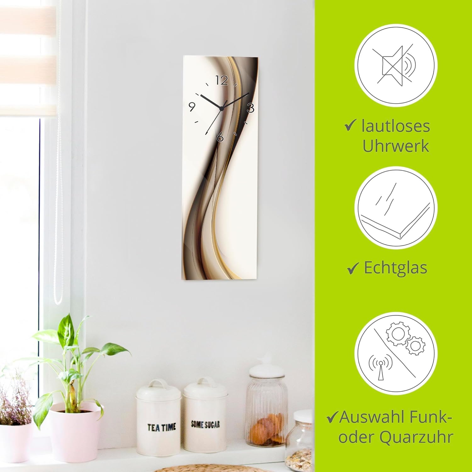 - VERWENDUNG: Unsere analoge Wanduhr aus Glas im Modern Look eignet sich für alle Wände in Wohnzimmer, Schlafzimmer, Büro, Flur, Küche oder Esszimmer - Fertig zum Aufhängen geliefert