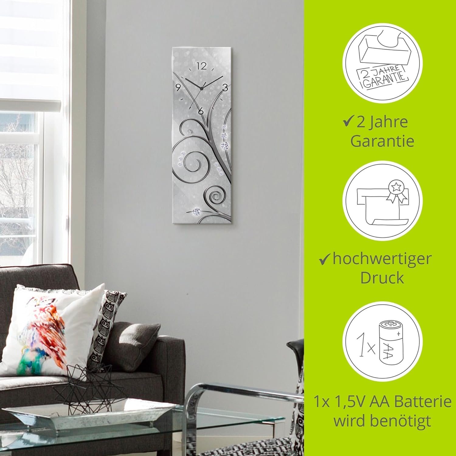 - UHRWERK: Das lautlose Uhrwerk läuft ohne Ticken. Nicht nur leise, sondern geräuschlos! Somit auch als Schlafzimmer Deko geeignet. Hinweis: 1x 1,5V AA Batterie wird benötigt (nicht enthalten)