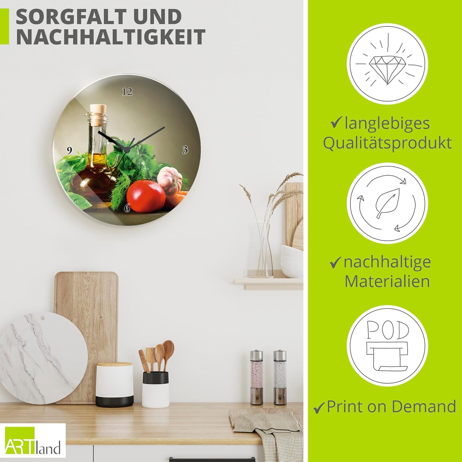 ARTLAND Wanduhr ohne Tickgeräusche Glas Quarzuhr Ø 30 cm Rund Lautlos Italien Essen Gemüse Gewürze K