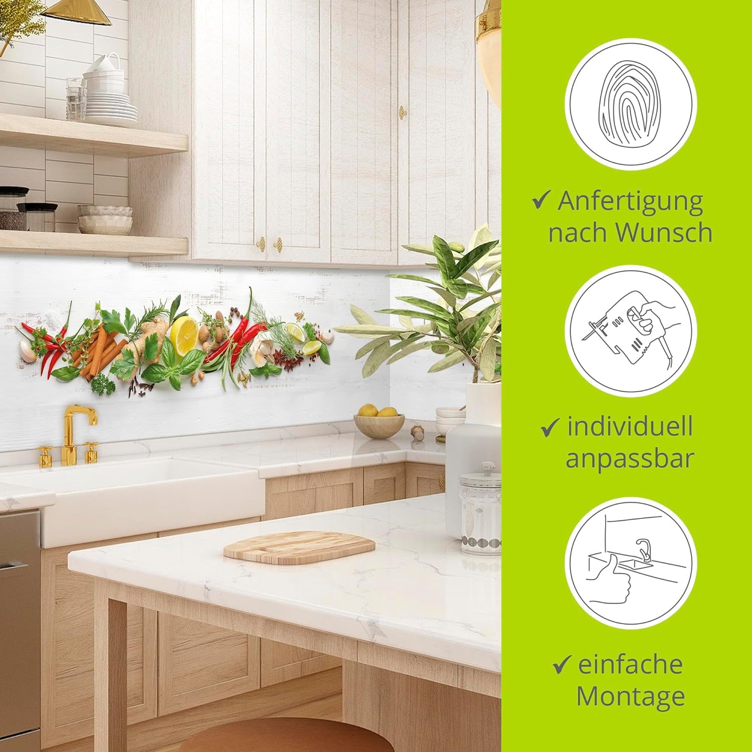 - SONDERWUNSCH: Gerne erfüllen wir Ihre individuellen Wünsche für einen Küchenspritzschutz - ob eigenes Motiv oder Wunschmass. Kontaktieren Sie uns über unser Verkäuferprofil artgalerie-bildershop