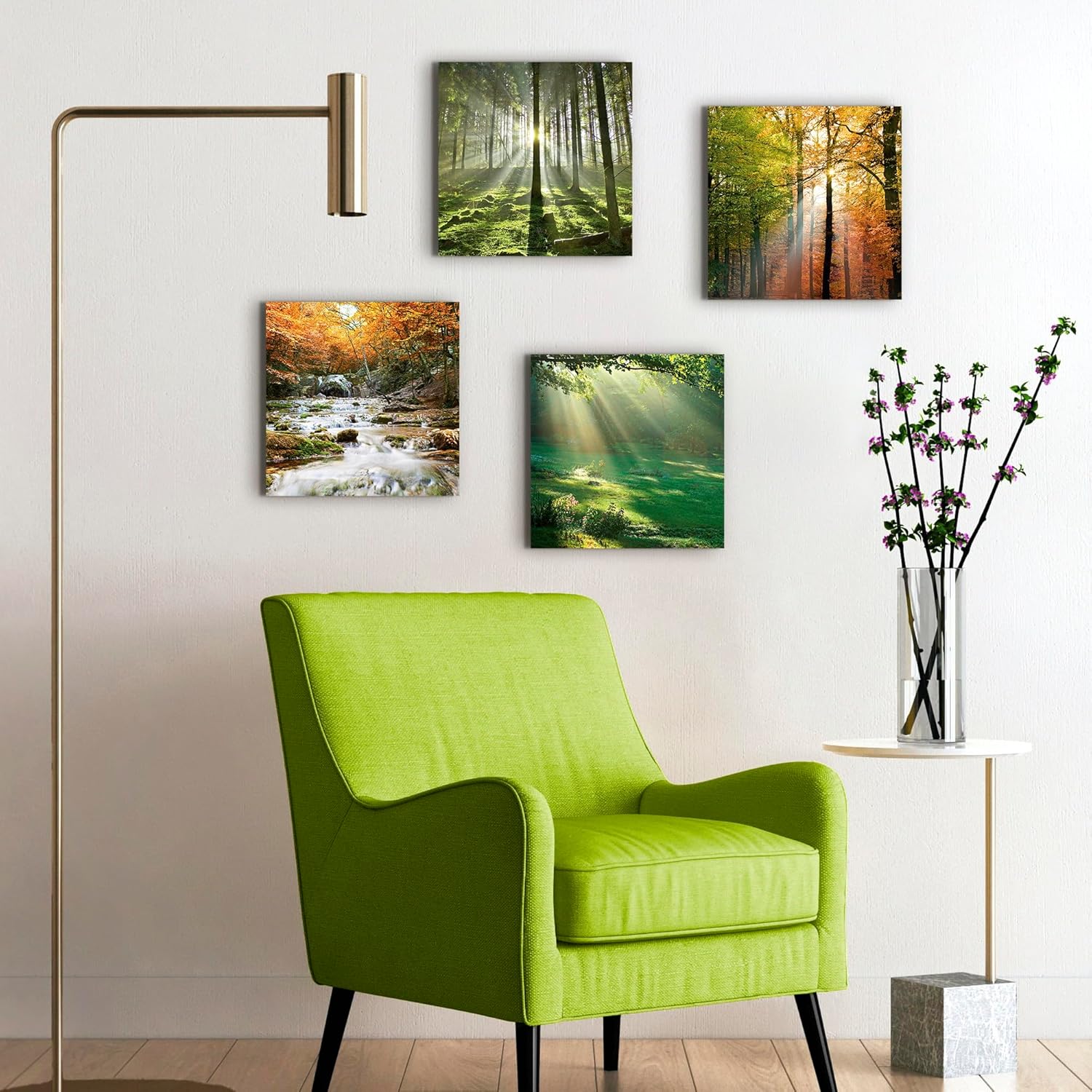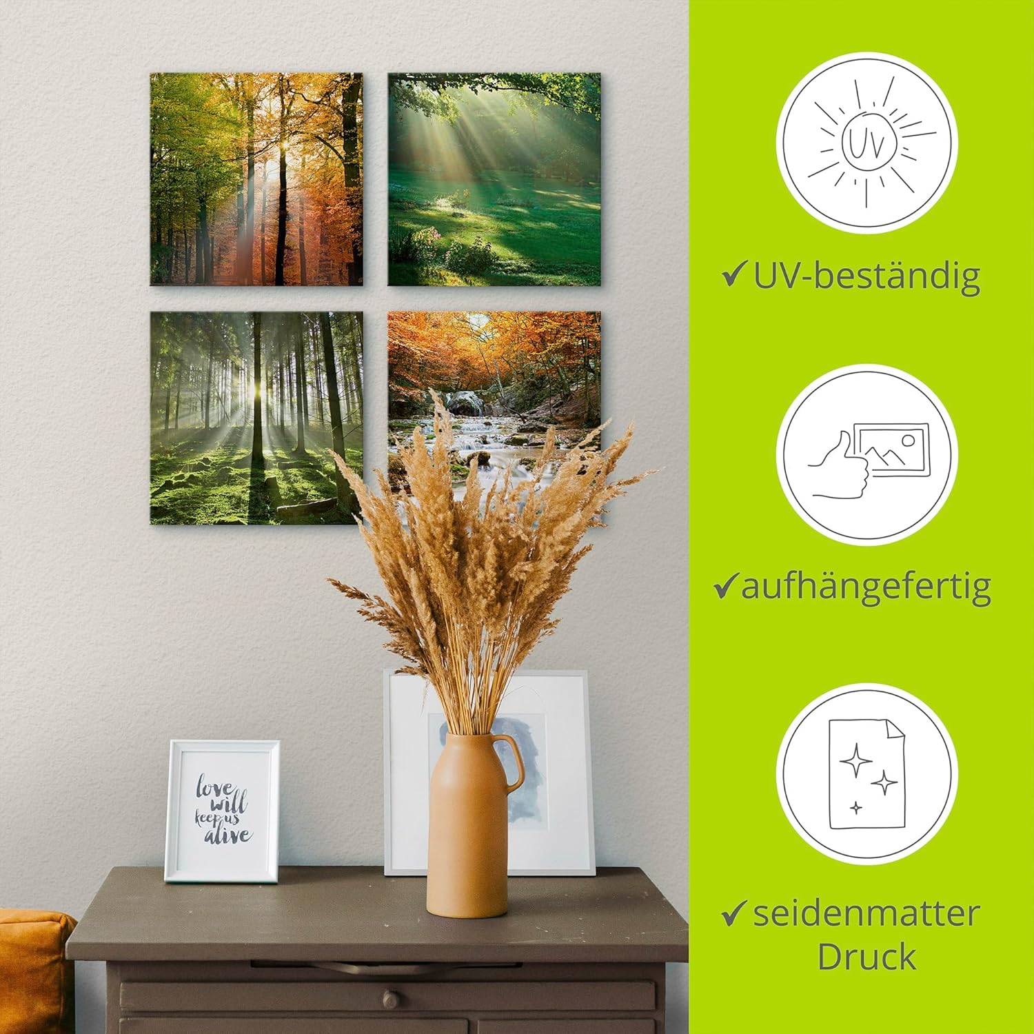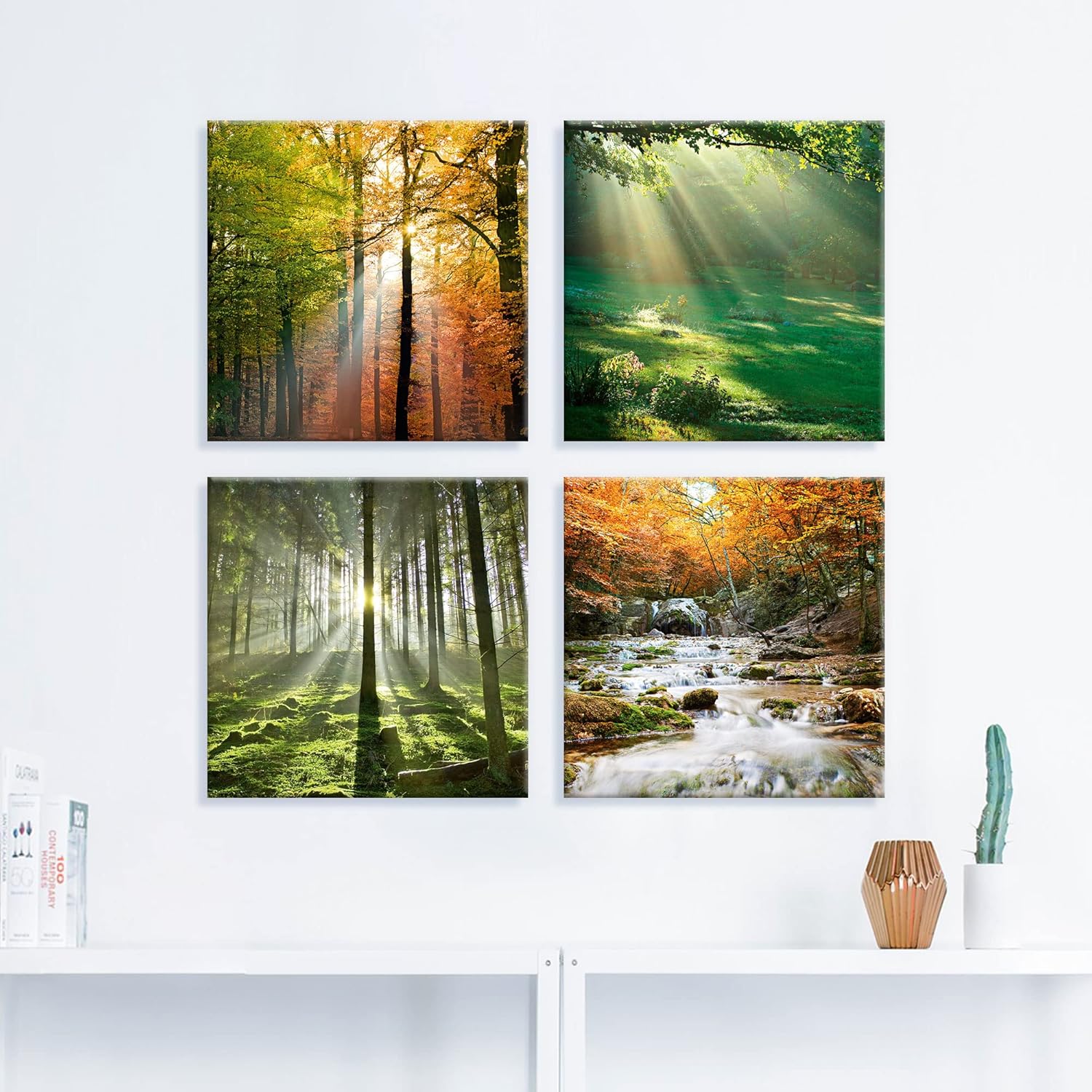 ARTLAND Leinwandbilder auf Holz 4 teilig je 30x30 cm + weitere Grössen Bilderset Natur Waldbilder He
