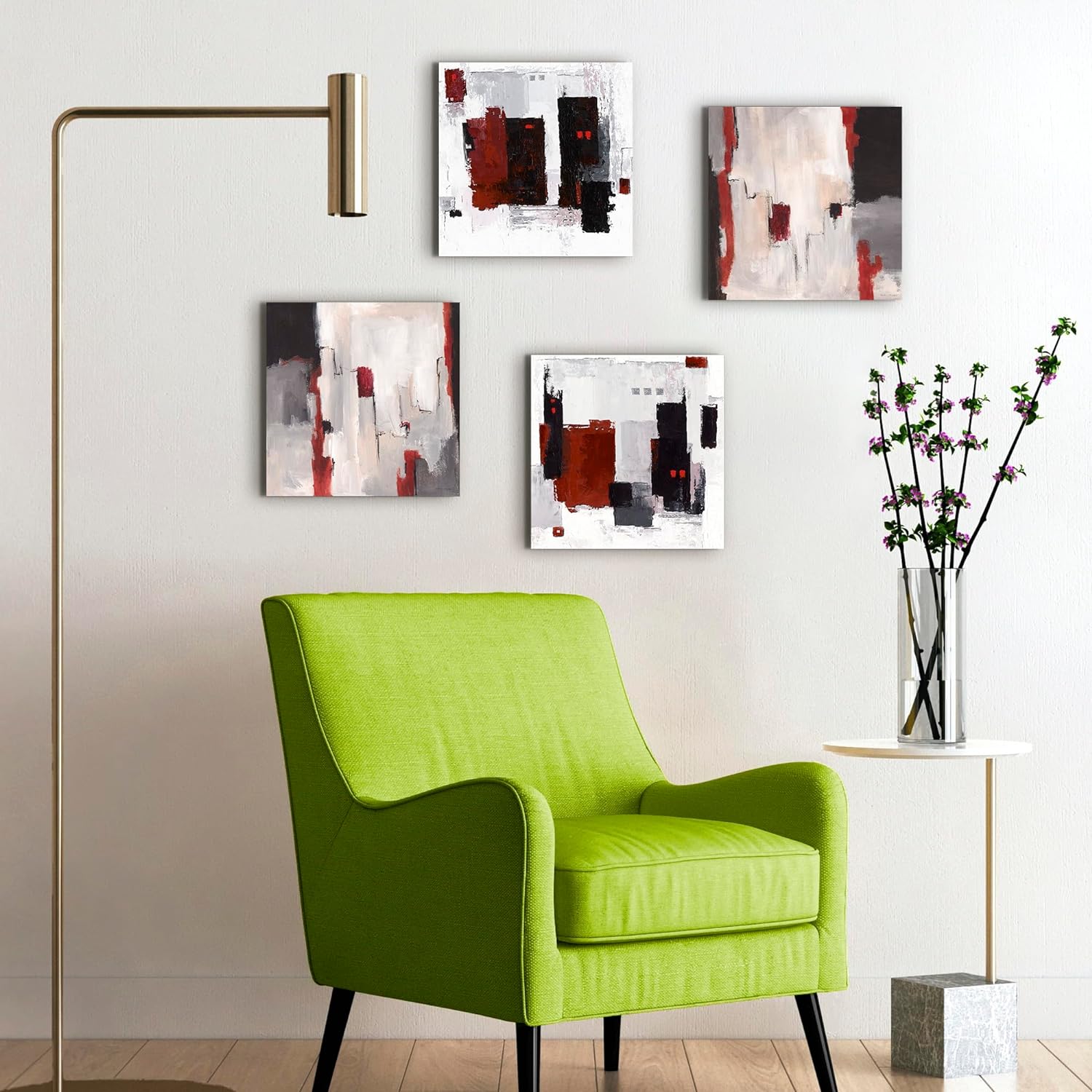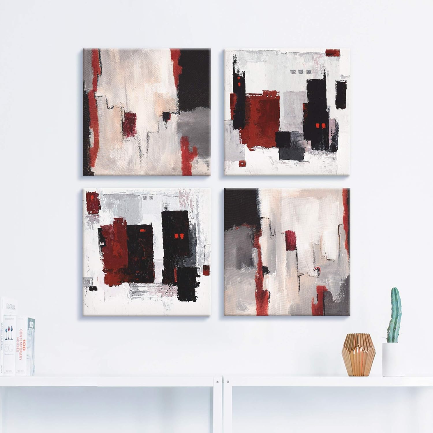 ARTLAND Leinwandbilder auf Holz Wandbild Bild Set 4 teilig je 30x30 cm Abstrakte Kunst Malerei Moder