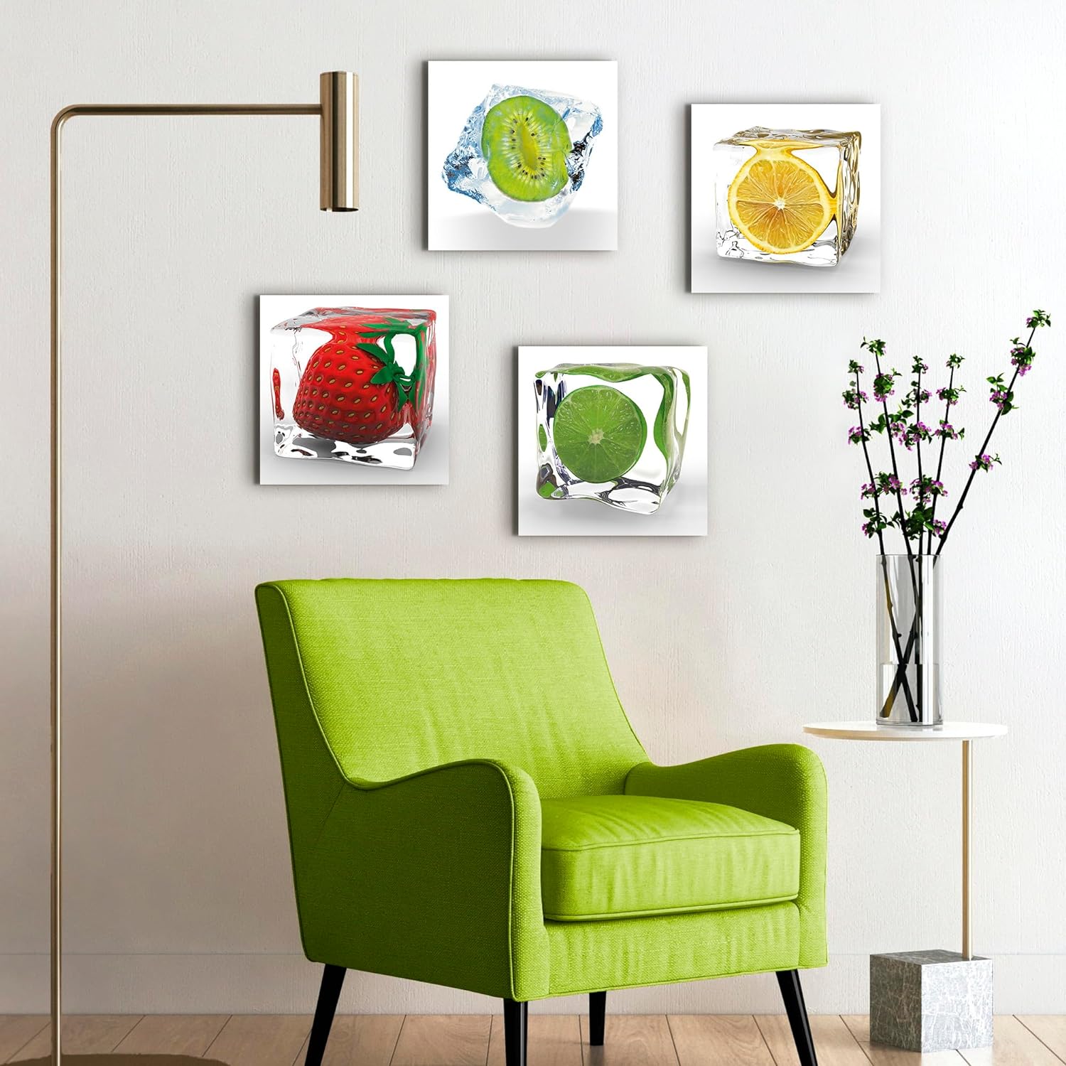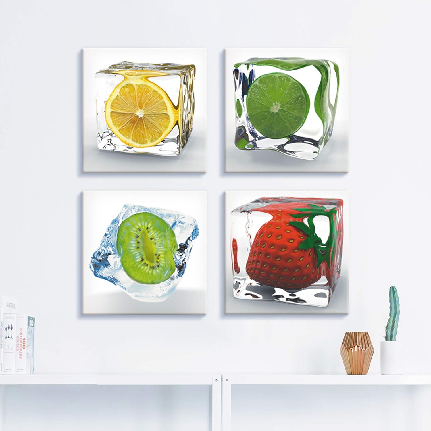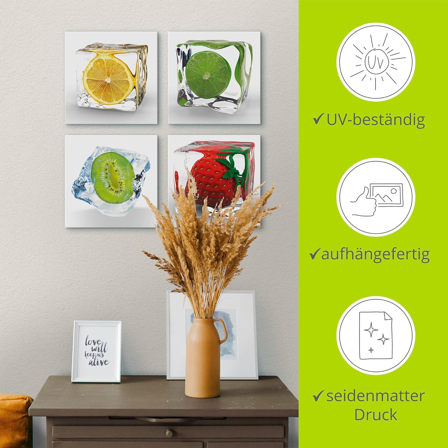 ARTLAND Leinwandbilder auf Holz Wandbild Bild Set 4 teilig je 40x40 cm Quadratisch Essen Lebensmitte