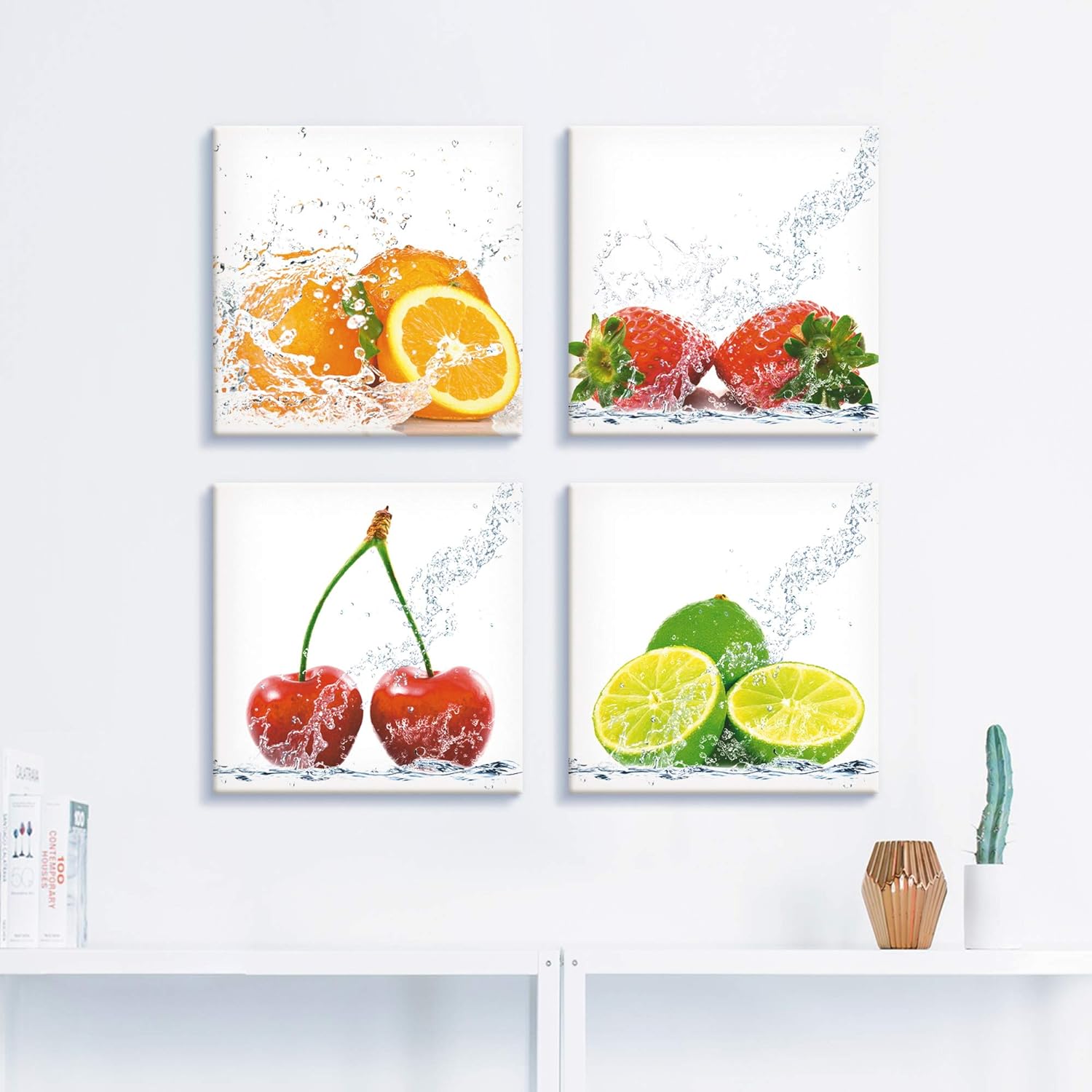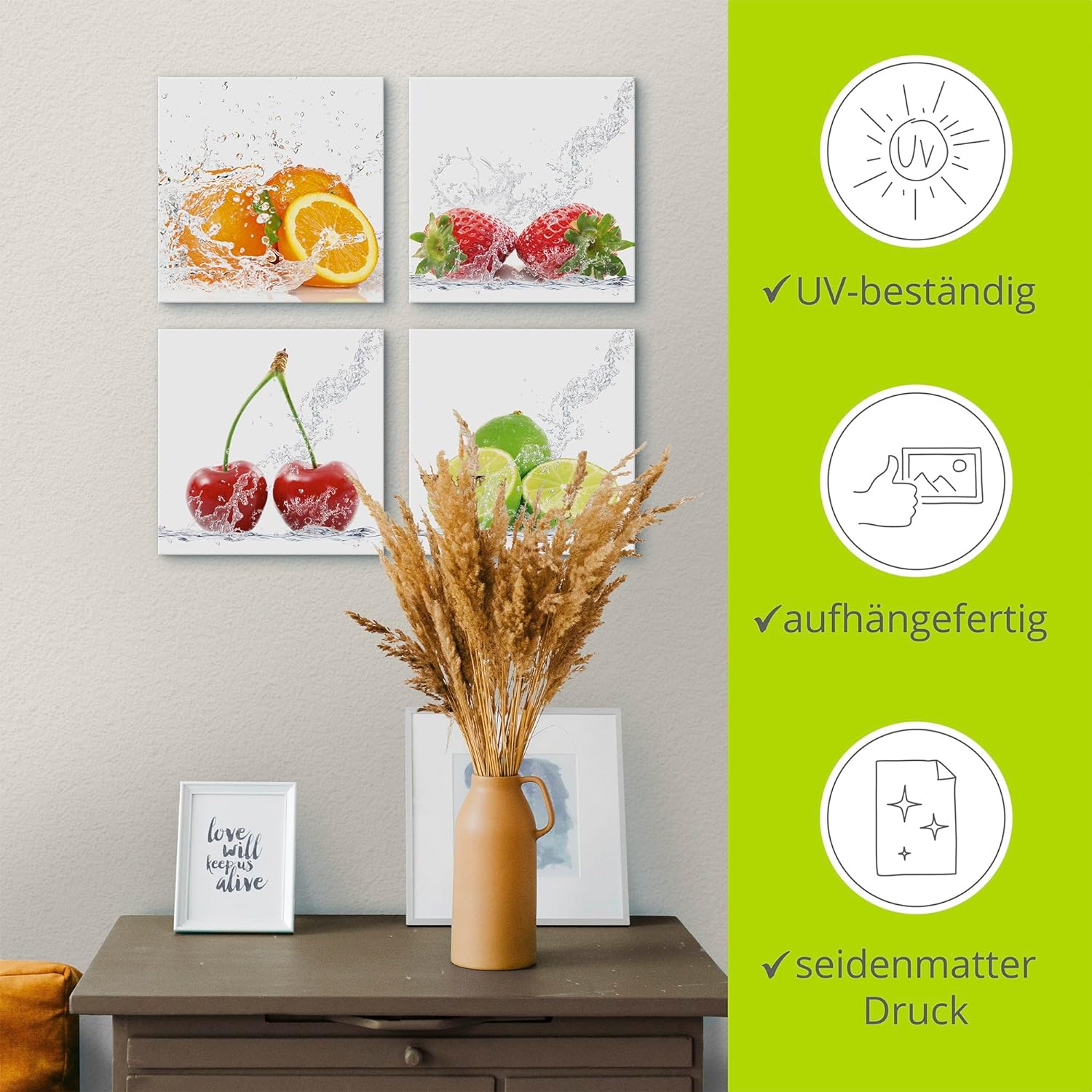 ARTLAND Leinwandbilder auf Holz Wandbild Bild Set 4 teilig je 40x40 cm Quadratisch Essen Lebensmitte