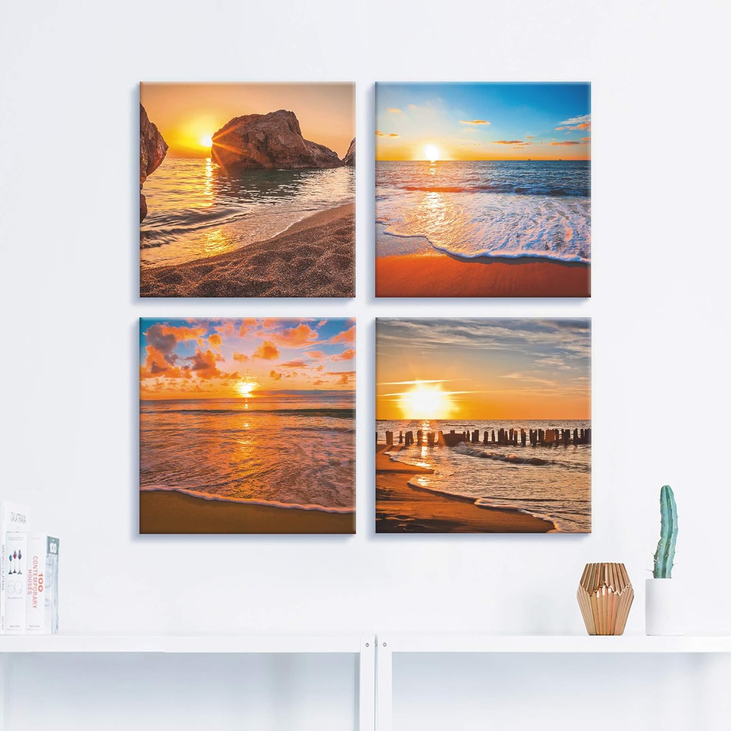 ARTLAND Leinwandbilder auf Holz Wandbild Bild Set 4 teilig je 40x40 cm Quadratisch Landschaft Sonnen