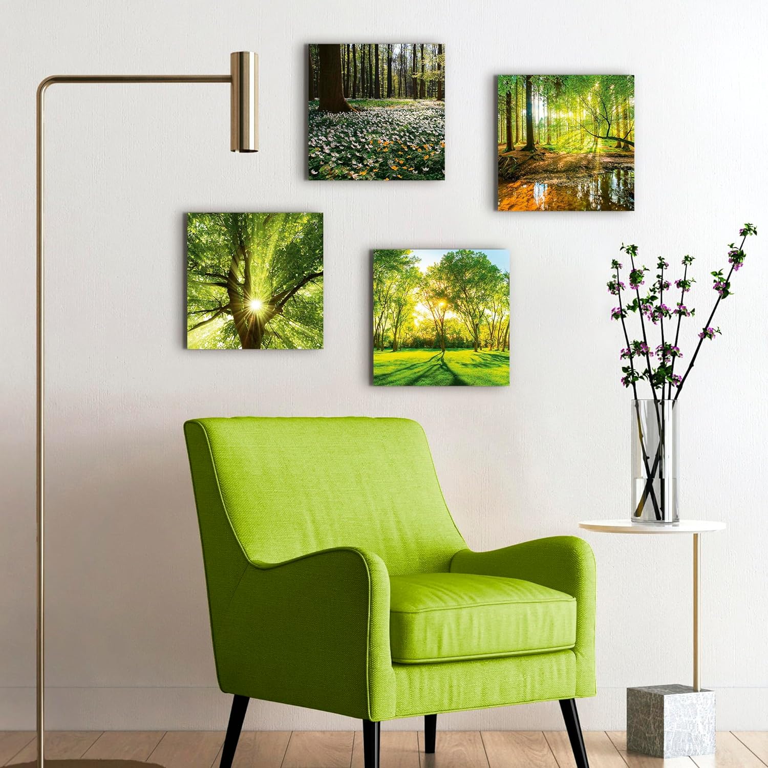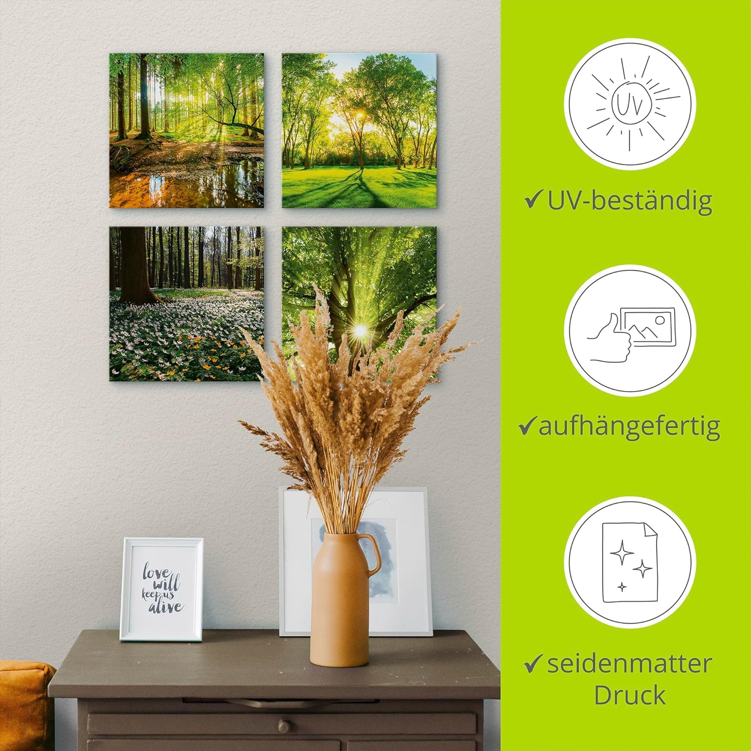 ARTLAND Leinwandbilder auf Holz Wandbild Bild Set 4 teilig je 40x40 cm Quadratisch Landschaft Wald G