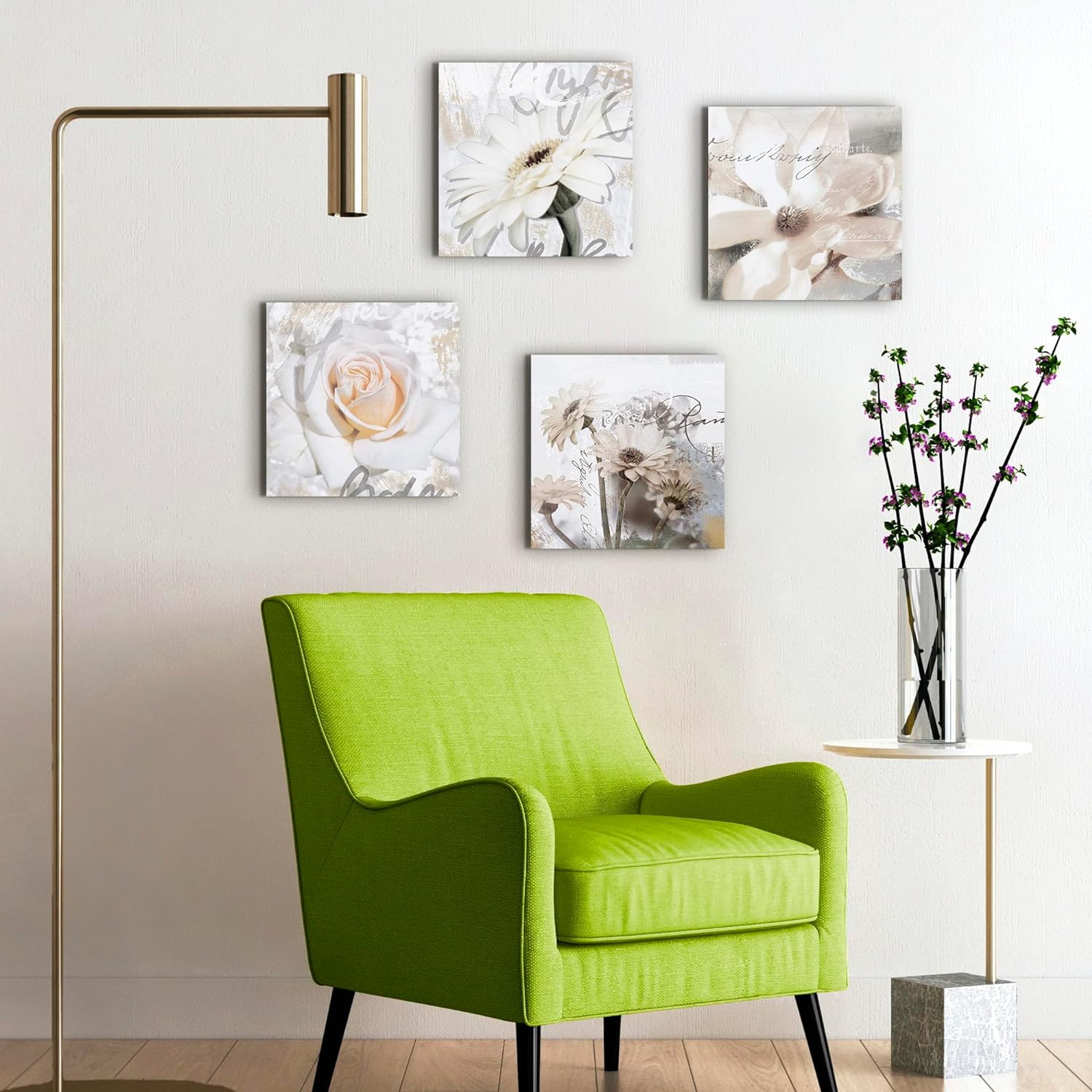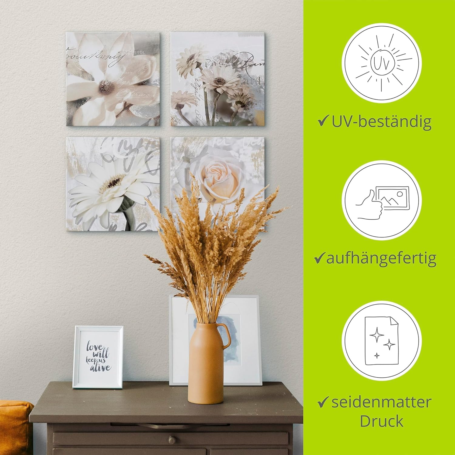 ARTLAND Leinwandbilder auf Holz Wandbild Bild Set 4 teilig je 40x40 cm Quadratisch Natur Blumen Kuns