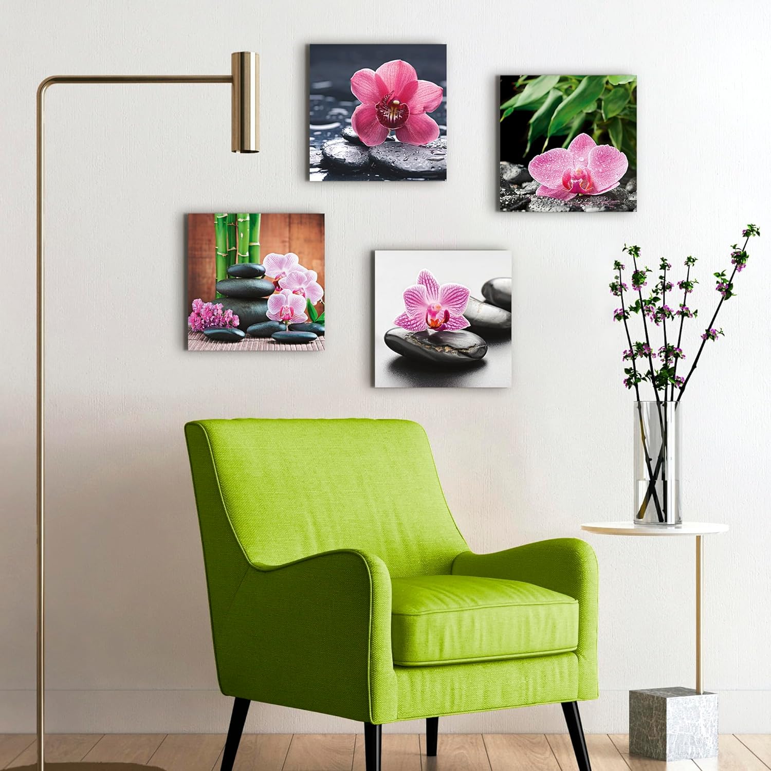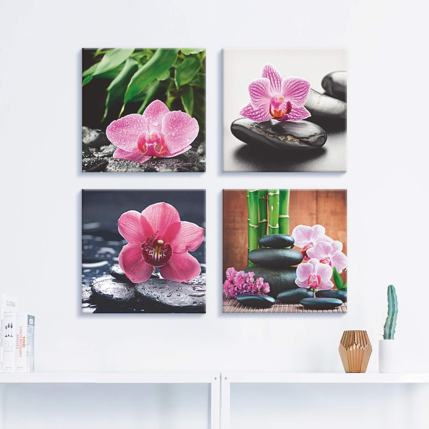 ARTLAND Leinwandbilder auf Holz Wandbild Bild Set 4 teilig je 40x40 cm Quadratisch Wellness Zen Pfla