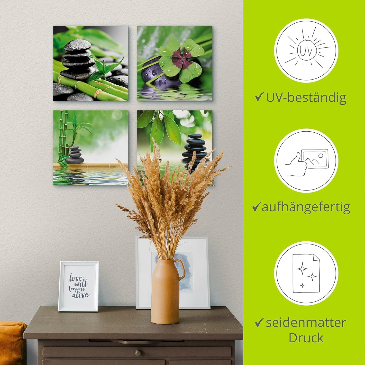 ARTLAND Leinwandbilder auf Holz Wandbild Bild Set 4 teilig je 40x40 cm Quadratisch Wellness Zen Stei