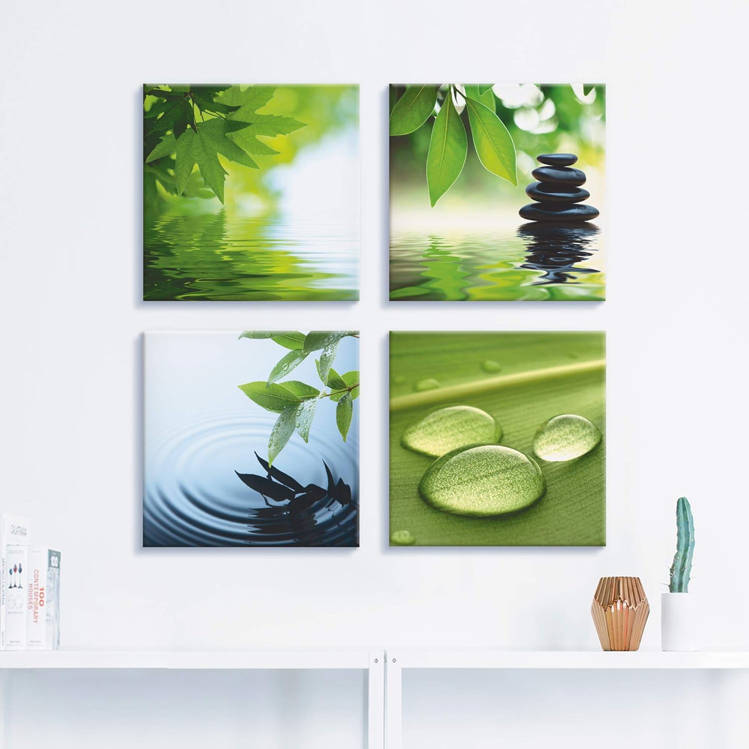 ARTLAND Leinwandbilder auf Holz Wandbild Bild Set 4 teilig je 40x40 cm Quadratisch Wellness Zen Wass