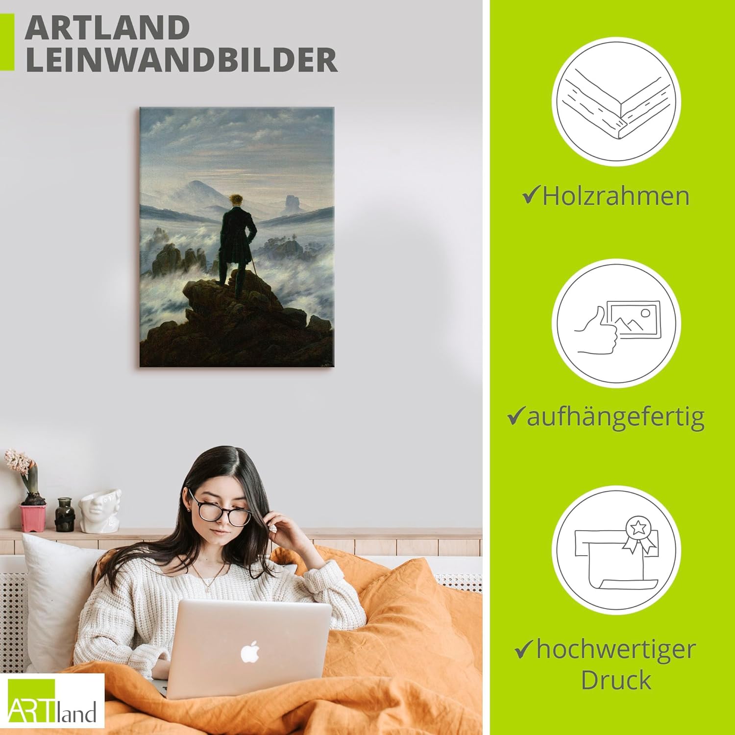 - MONTAGE: Das Bild aus Canvas kann durch die vormontierte Aufhängung direkt an die Wand gehangen werden. Der Aufhänger ist vom blickdichten Keilrahmenbild verdeckt. Inklusiv: Keile zum Nachspannen