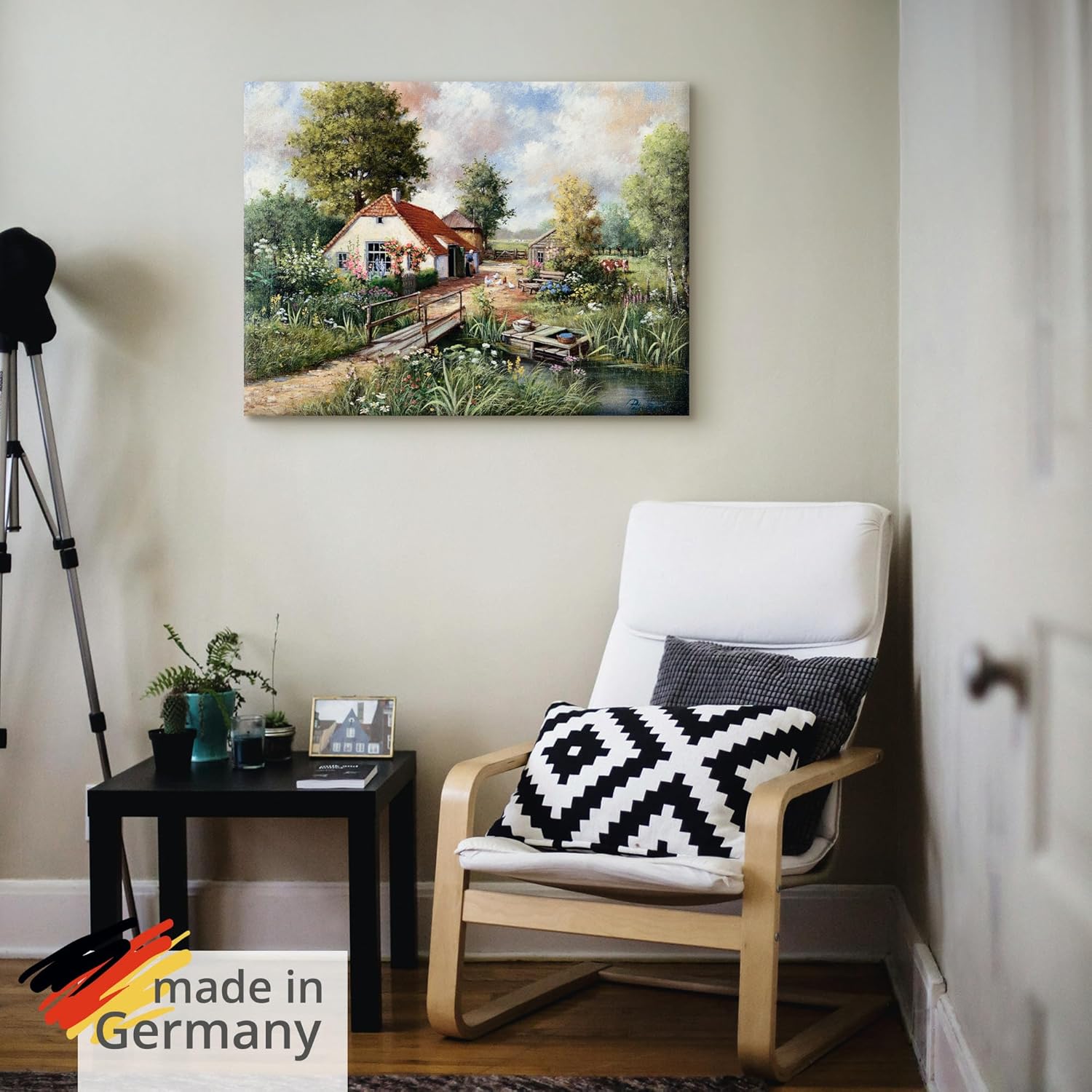 - MONTAGE: Das Bild aus Canvas kann durch die vormontierte Aufhängung direkt an die Wand gehangen werden. Der Aufhänger ist vom blickdichten Keilrahmenbild verdeckt. Inklusiv: Keile zum Nachspannen