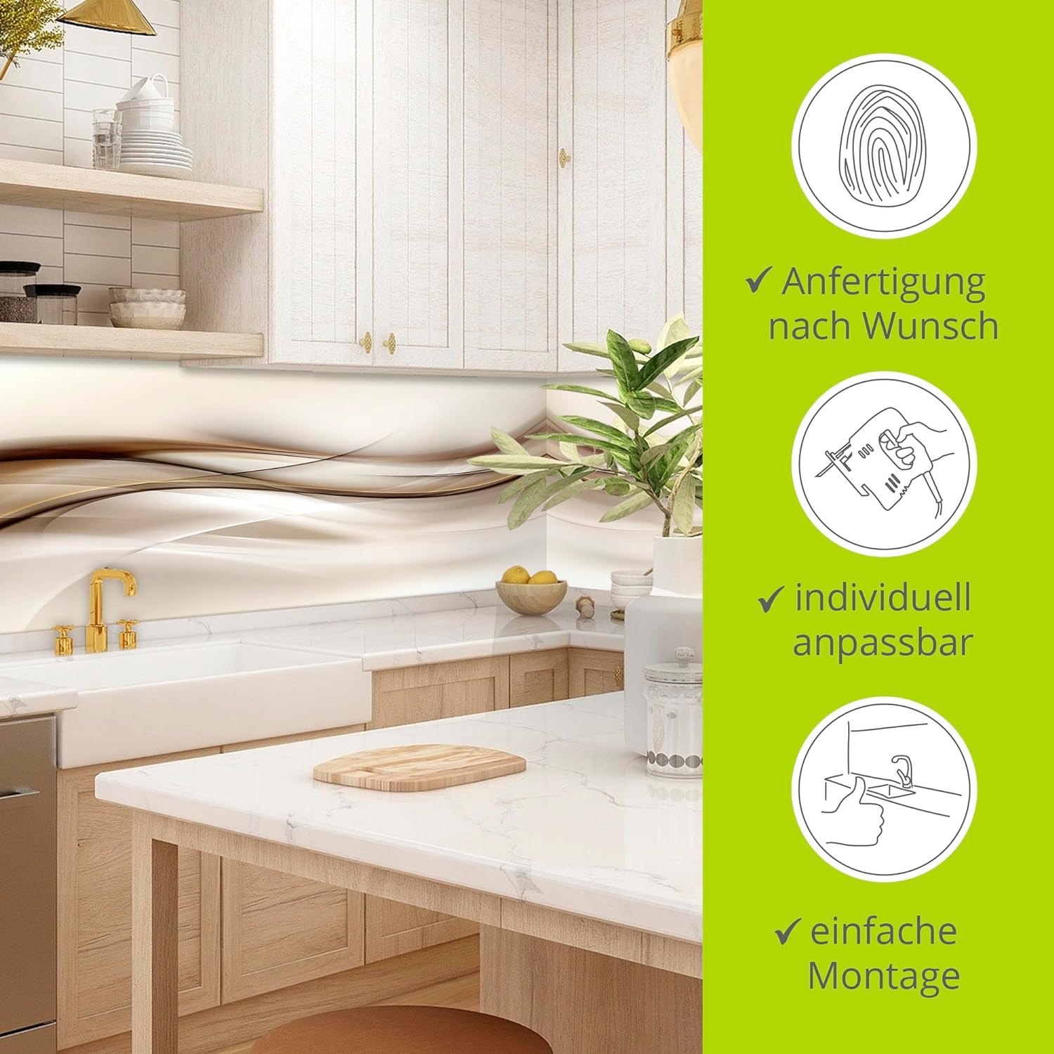 • SONDERWUNSCH: Gerne erfüllen wir Ihre individuellen Wünsche für einen Küchenspritzschutz - ob eigenes Motiv oder Wunschmass. Kontaktieren Sie uns über unser Verkäuferprofil artgalerie-bildershop