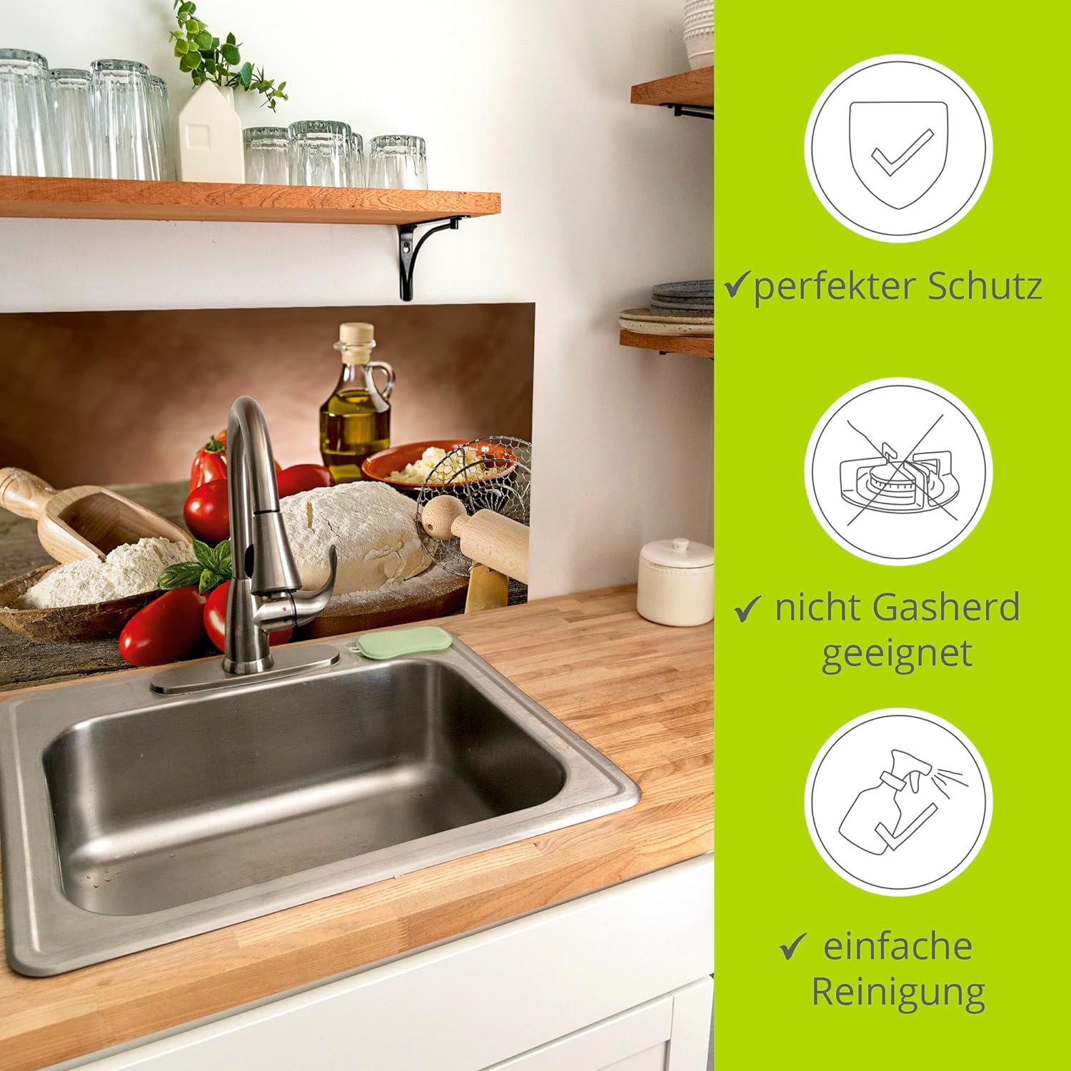 • SONDERWUNSCH: Gerne erfüllen wir Ihre individuellen Wünsche für einen Küchenspritzschutz - ob eigenes Motiv oder Wunschmass. Kontaktieren Sie uns über unser Verkäuferprofil artgalerie-bildershop
