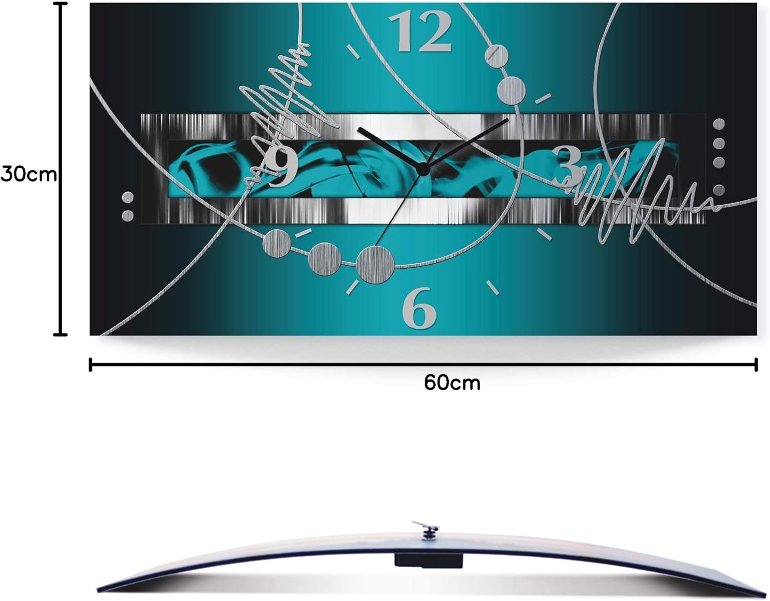 Variante: Silber Abstrakt Petrol Funkuhr 60x30 cm