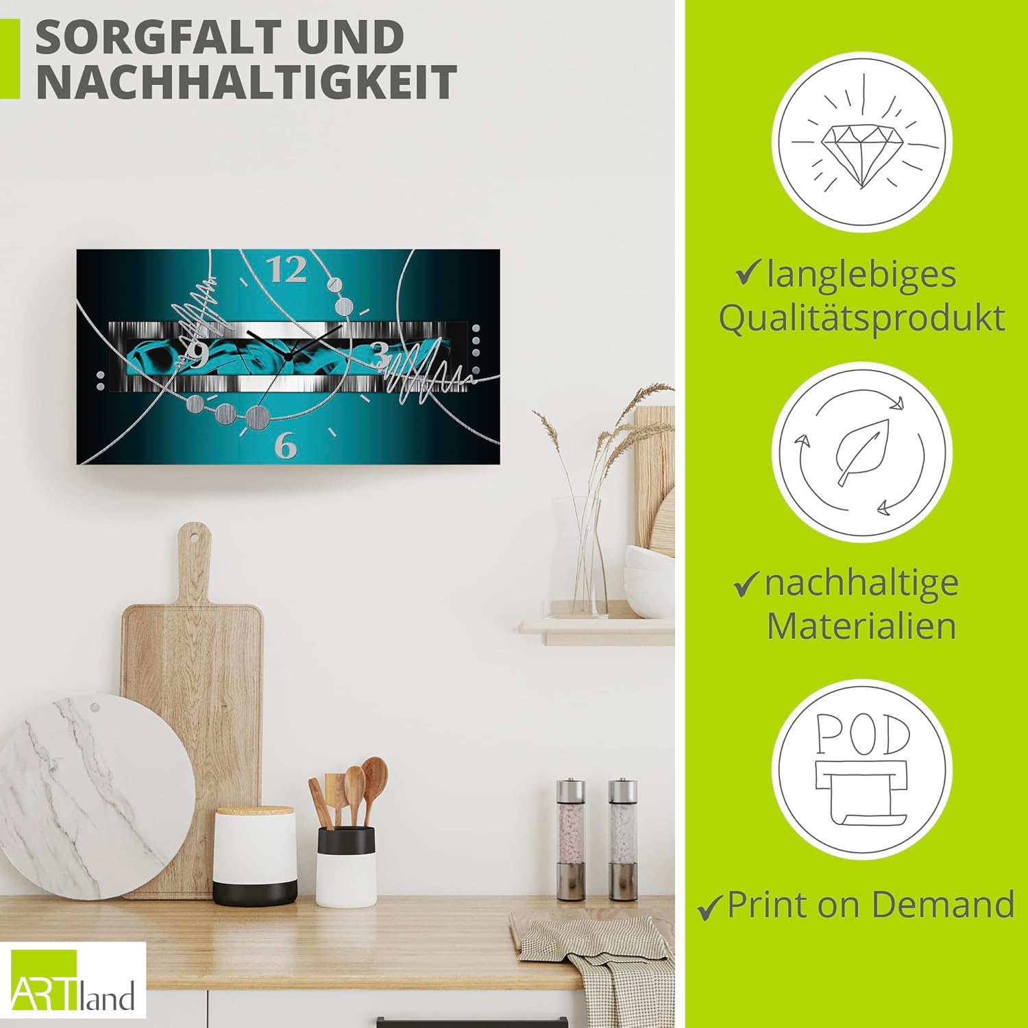 - DRUCKQUALITÄT: Das Wanduhrbild ist vorderseitig mit UV-beständigen Farben bedruckt, die nicht nur für ein farbechtes Druckergebnis sorgen, sondern auch geruchlos und langlebig sind