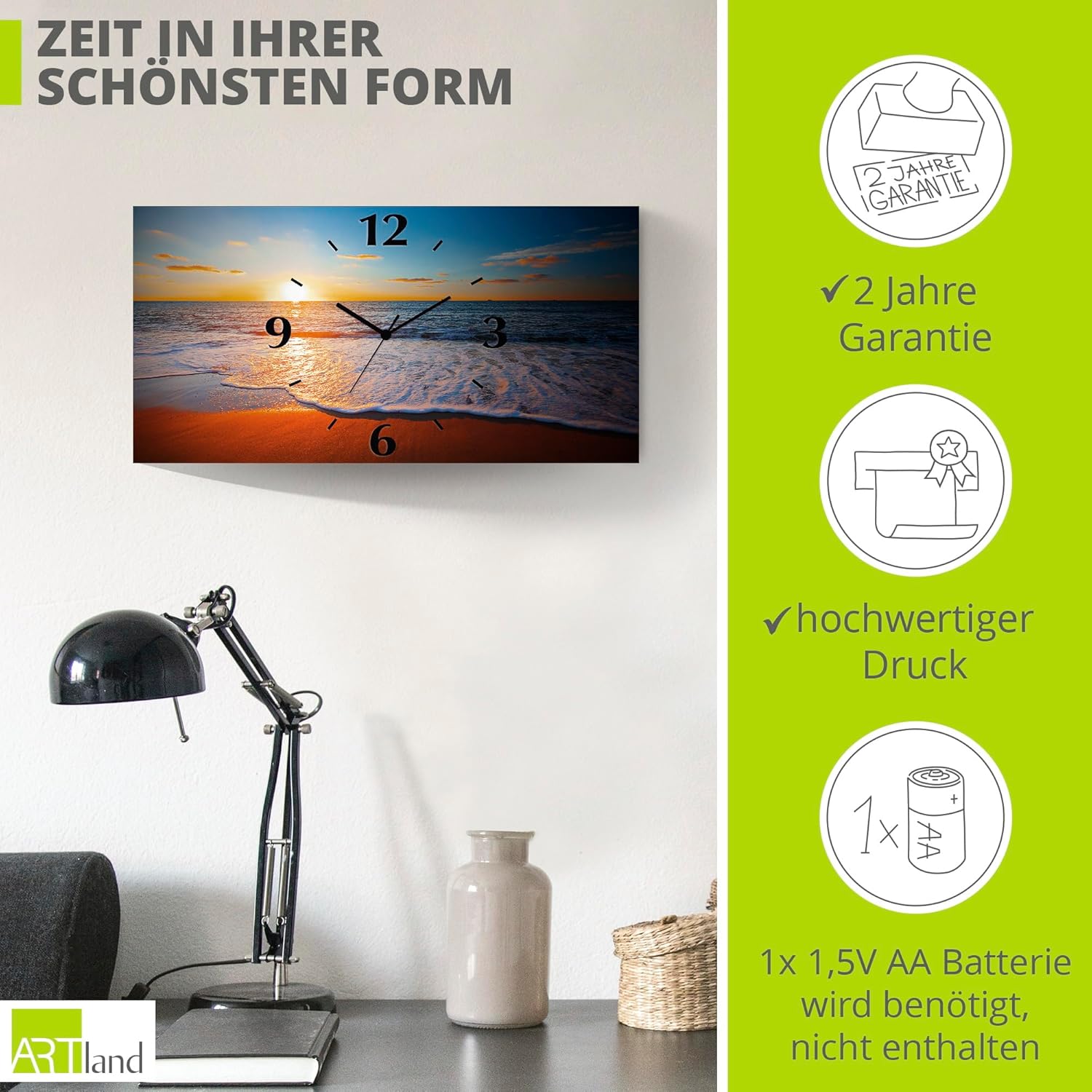 - DRUCKQUALITÄT: Das Wanduhrbild ist vorderseitig mit UV-beständigen Farben bedruckt, die nicht nur für ein farbechtes Druckergebnis sorgen, sondern auch geruchlos und langlebig sind