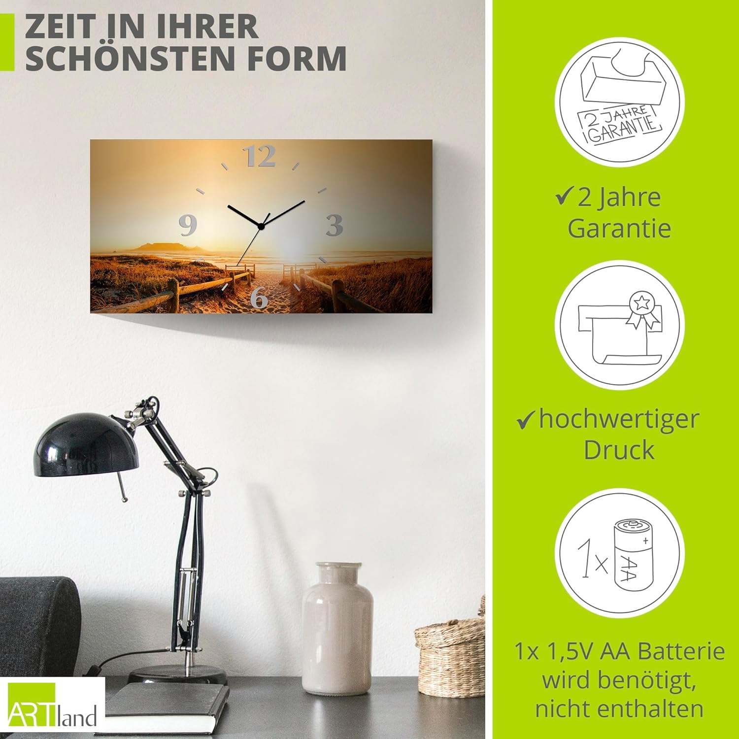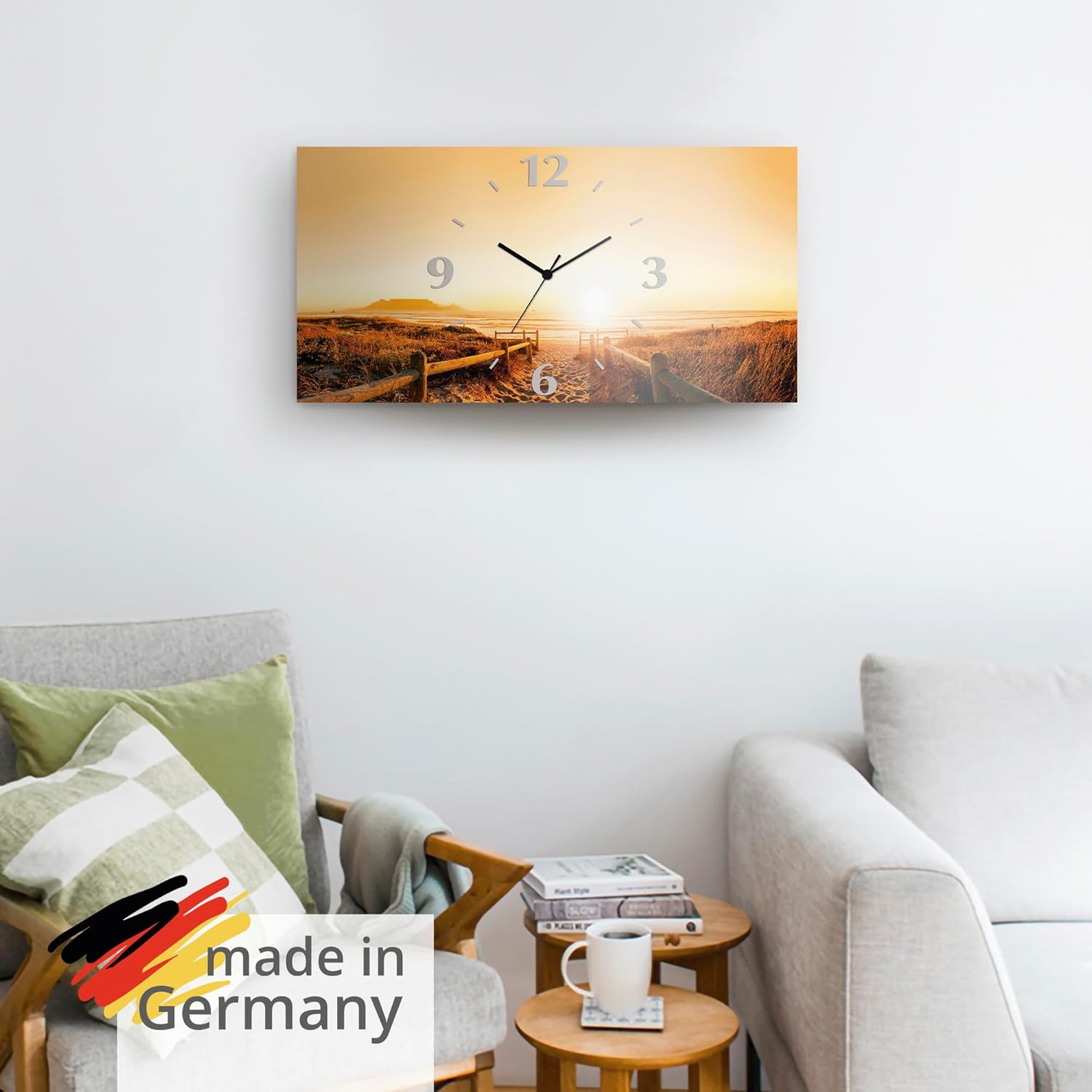 • DRUCKQUALITÄT: Das Wanduhrbild ist vorderseitig mit UV-beständigen Farben bedruckt, die nicht nur für ein farbechtes Druckergebnis sorgen, sondern auch geruchlos und langlebig sind