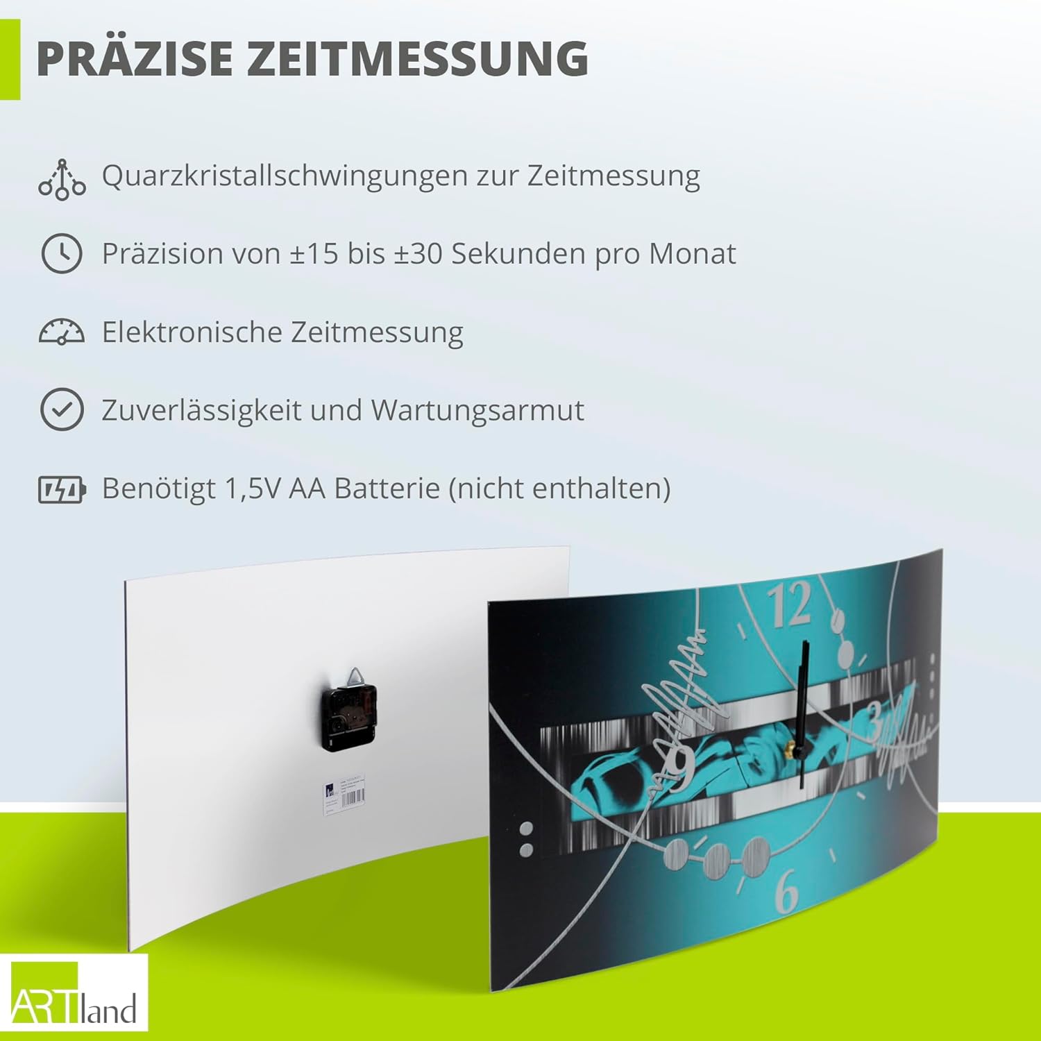 • UHRWERK: Das geräuschlose Uhrwerk läuft ohne Ticken. Nicht nur leise, sondern geräuschlos! Somit auch als Schlafzimmer Deko geeignet. Hinweis: 1x 1,5V AA Batterie wird benötigt (nicht enthalten)