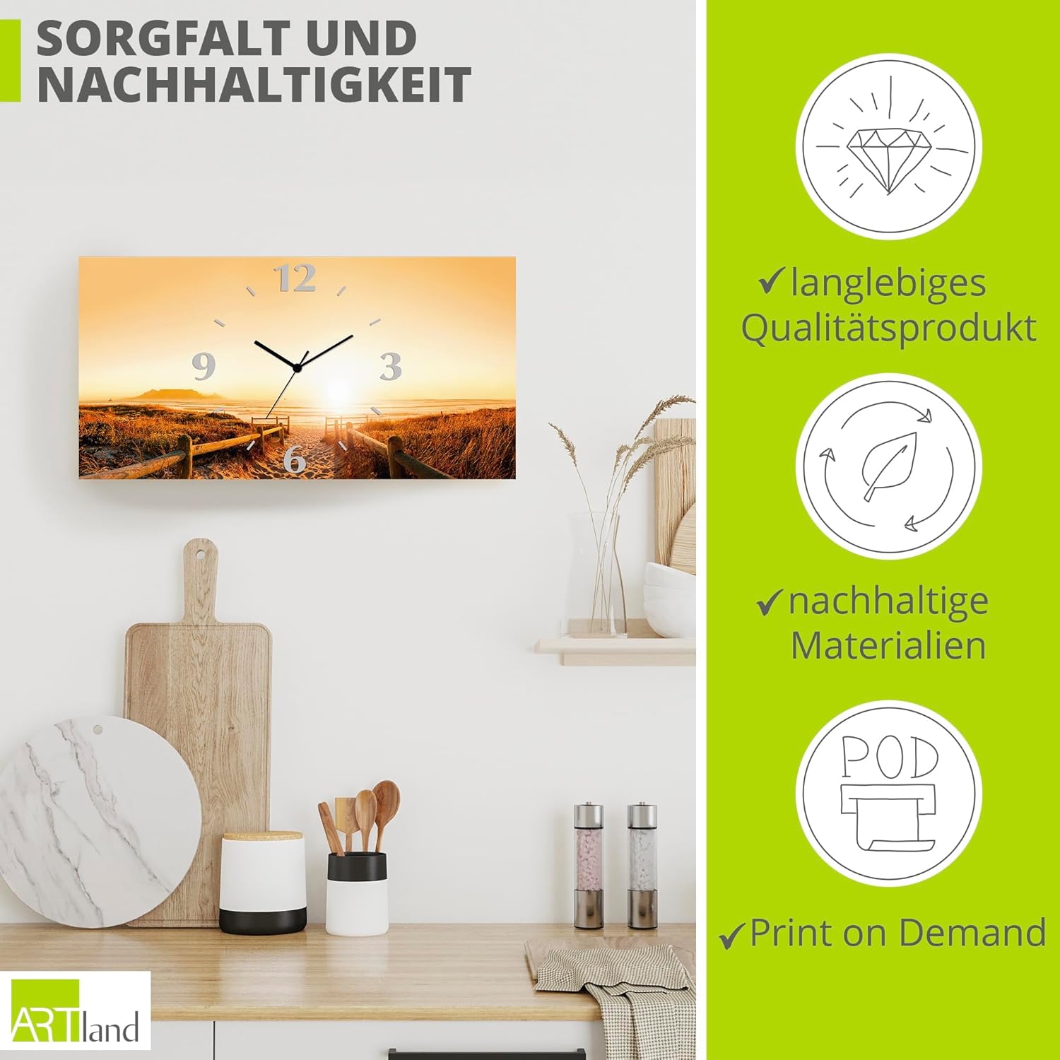 - DRUCKQUALITÄT: Das Wanduhrbild ist vorderseitig mit UV-beständigen Farben bedruckt, die nicht nur für ein farbechtes Druckergebnis sorgen, sondern auch geruchlos und langlebig sind