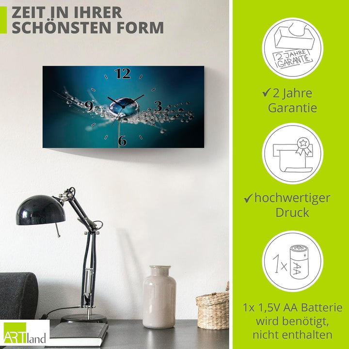 Variante: Pusteblumen Tautropfen Blau Quarzuhr 60x30 cm