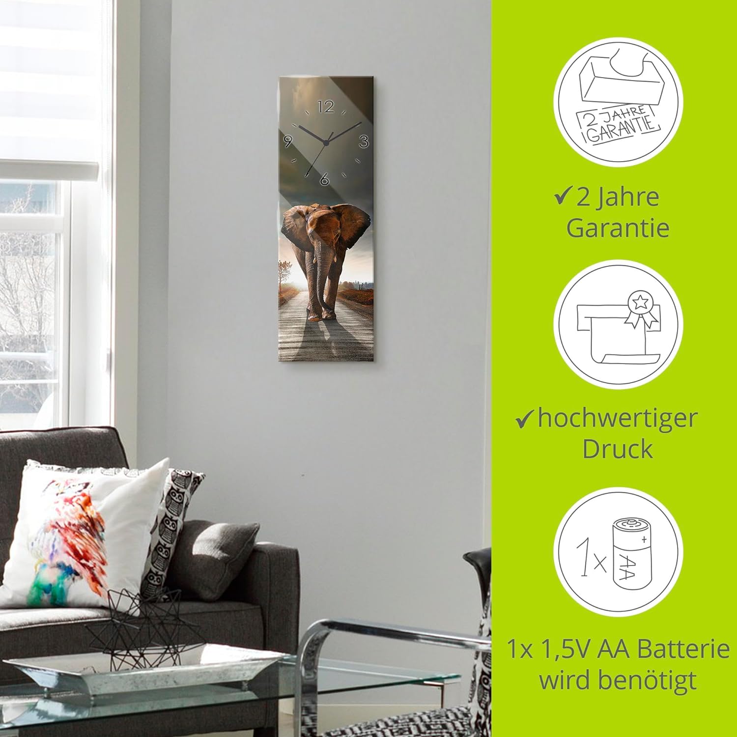 - DRUCKQUALITÄT: Das Wanduhrbild ist vorderseitig mit UV-beständigen Farben bedruckt, die nicht nur für ein farbechtes Druckergebnis sorgen, sondern auch geruchlos und langlebig sind