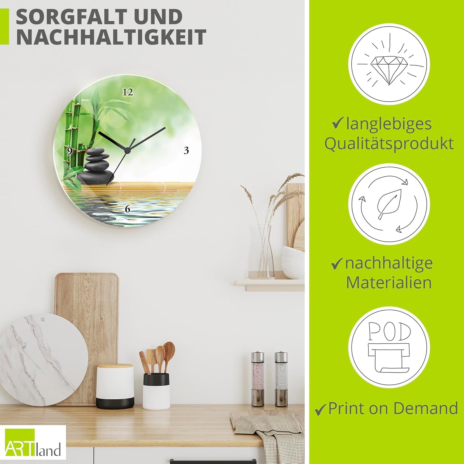 - DRUCKQUALITÄT: Das Wanduhrbild ist vorderseitig mit UV-beständigen Farben bedruckt, die nicht nur für ein farbechtes Druckergebnis sorgen, sondern auch geruchlos und langlebig sind