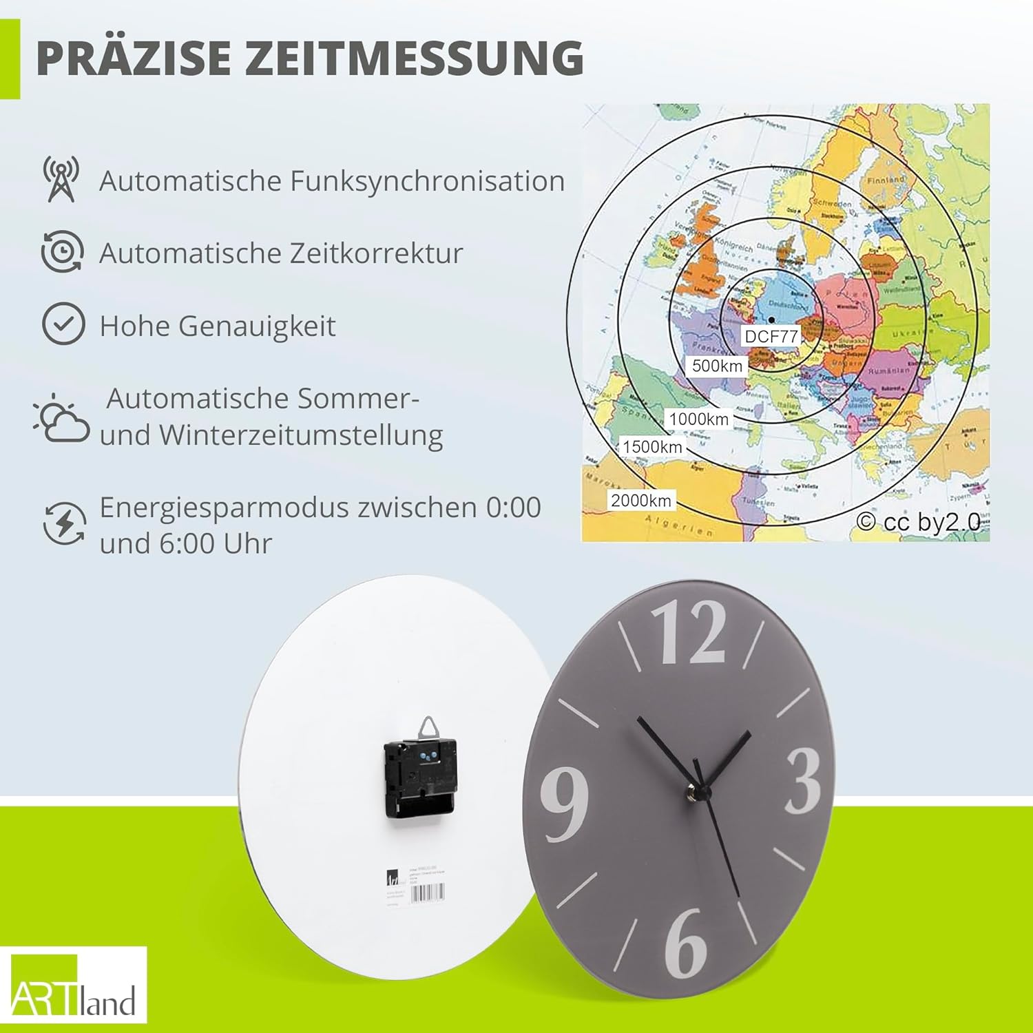 - UHRWERK: Das geräuschlose Uhrwerk läuft ohne Ticken. Nicht nur leise, sondern geräuschlos! Automatische Umstellung auf Sommer- & Winterzeit. Hinweis: 1,5V AA Batterie wird benötigt (nicht enthalten)
