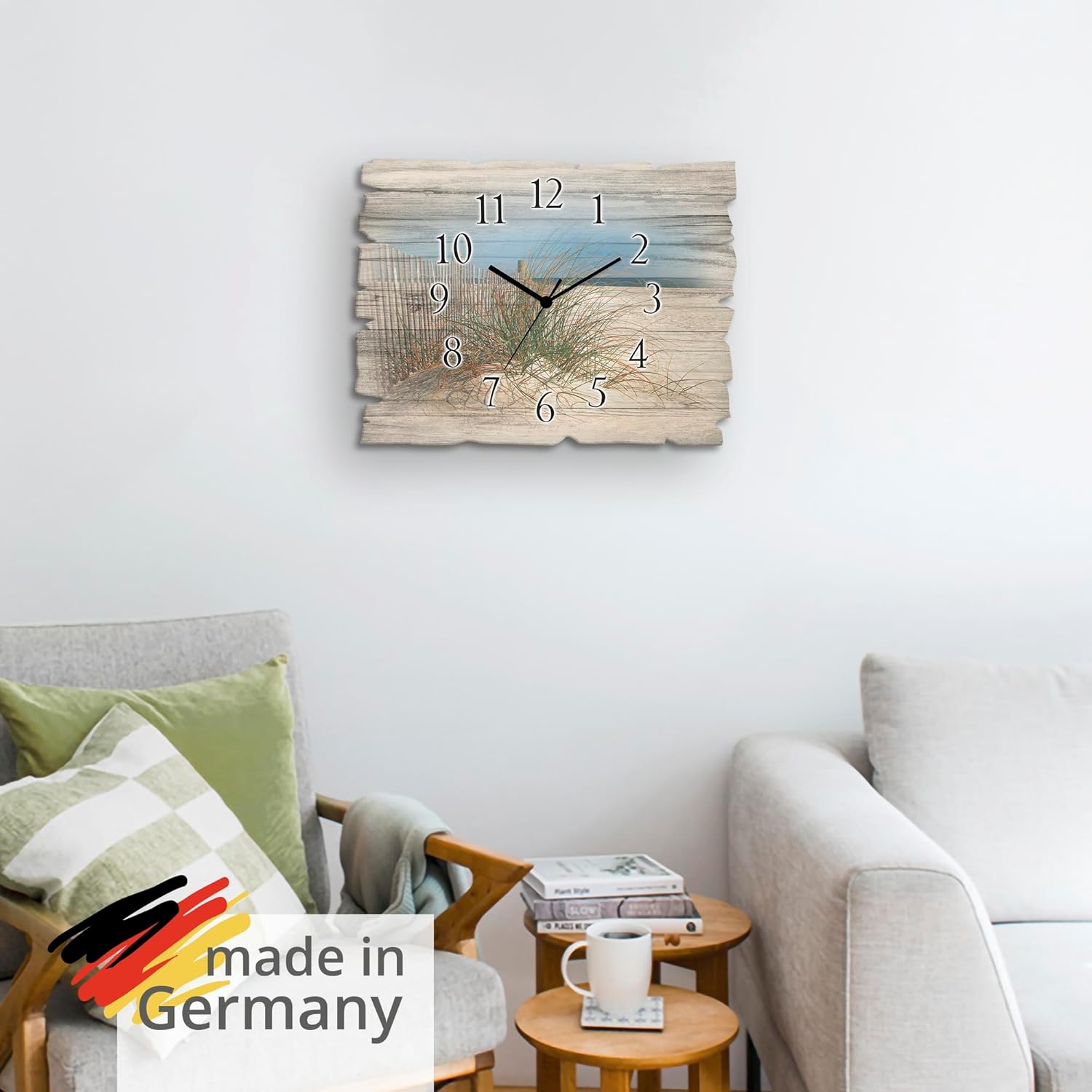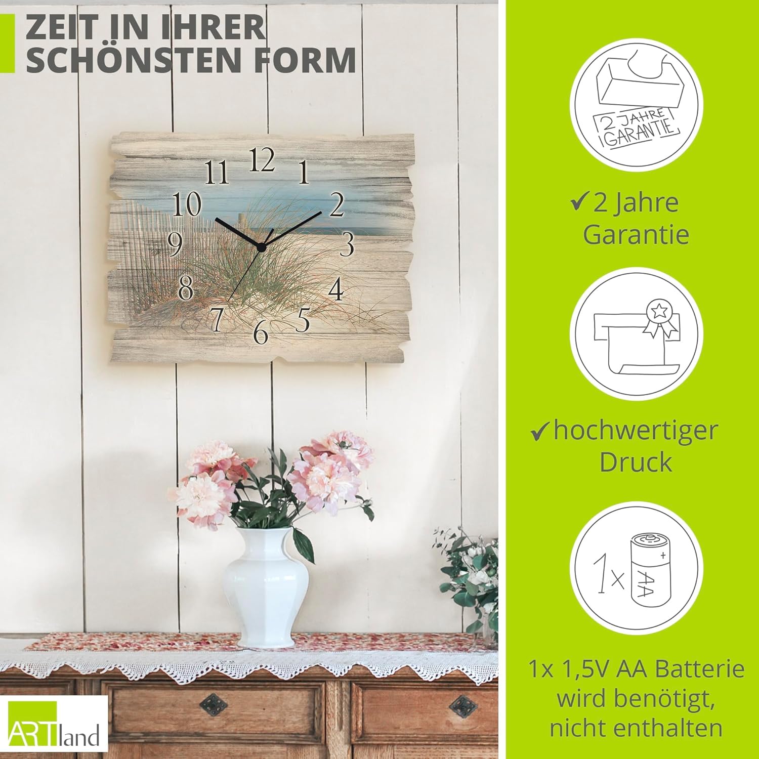 ARTLAND Wanduhr ohne Tickgeräusche aus Holz Funkuhr 40x30 cm Rechteckig Lautlos Strand Meer Düne Grä