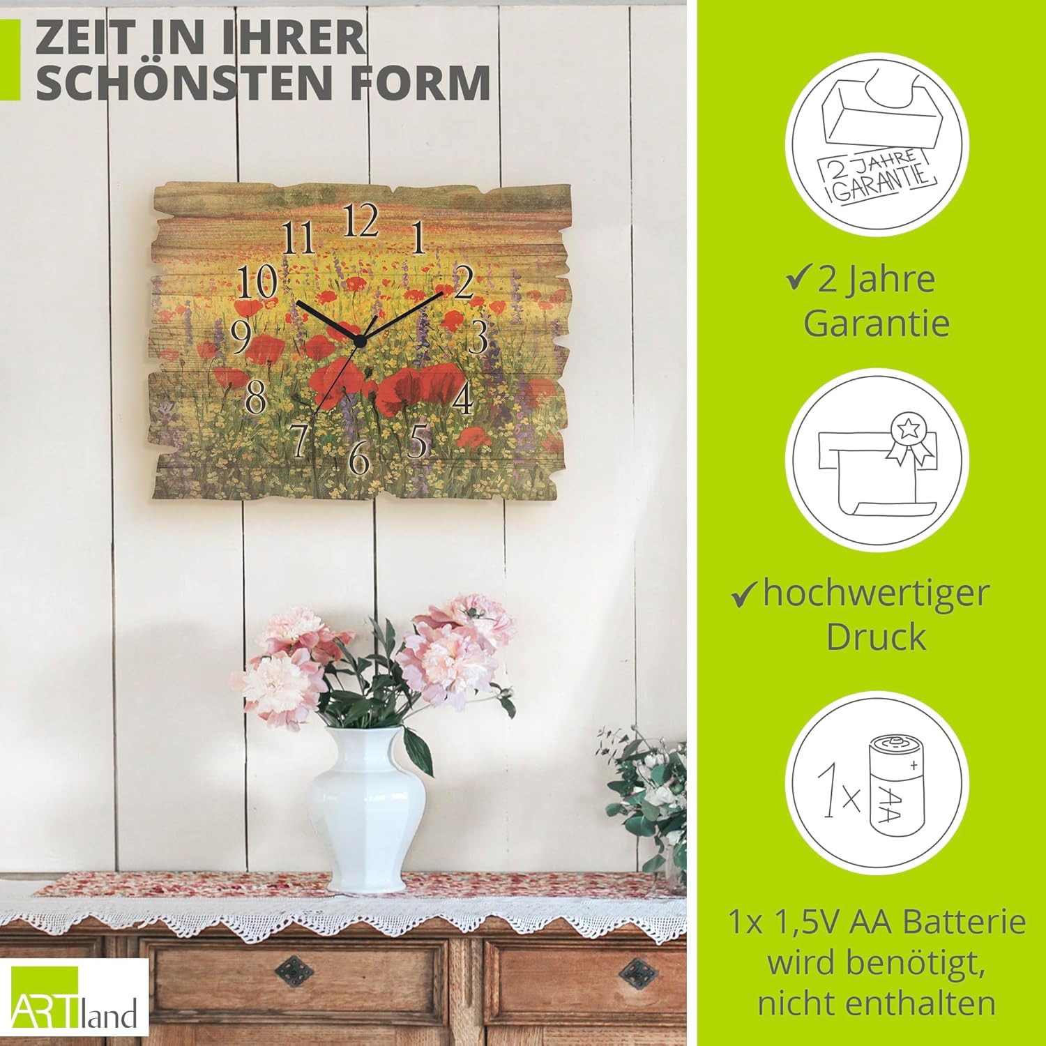 - DRUCKQUALITÄT: Die Wanduhr aus Holz ist vorderseitig mit UV-beständigen Farben bedruckt, die nicht nur für das beste Druckergebnis sorgen, sondern auch geruchlos sind