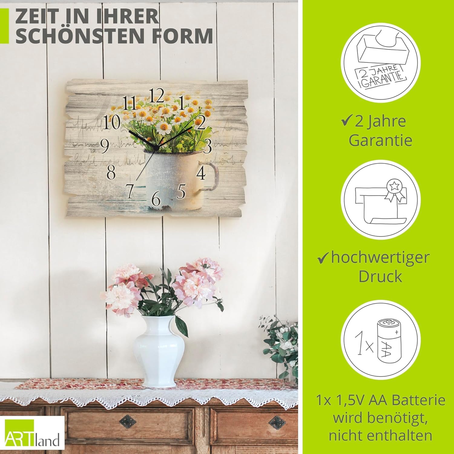 - VERWENDUNG: Unsere Quarzuhr im Shabby Chic Look aus 6mm Naturholz eignet sich für alle Wände in Wohnzimmer, Schlafzimmer, Büro, Flur, Küche oder Esszimmer - Fertig zum Aufhängen geliefert