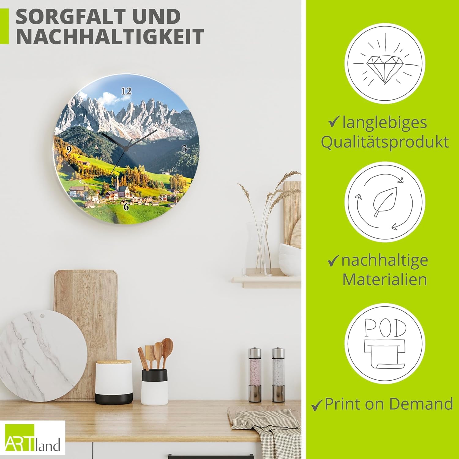 • DRUCKQUALITÄT: Das Wanduhrbild ist vorderseitig mit UV-beständigen Farben bedruckt, die nicht nur für ein farbechtes Druckergebnis sorgen, sondern auch geruchlos und langlebig sind