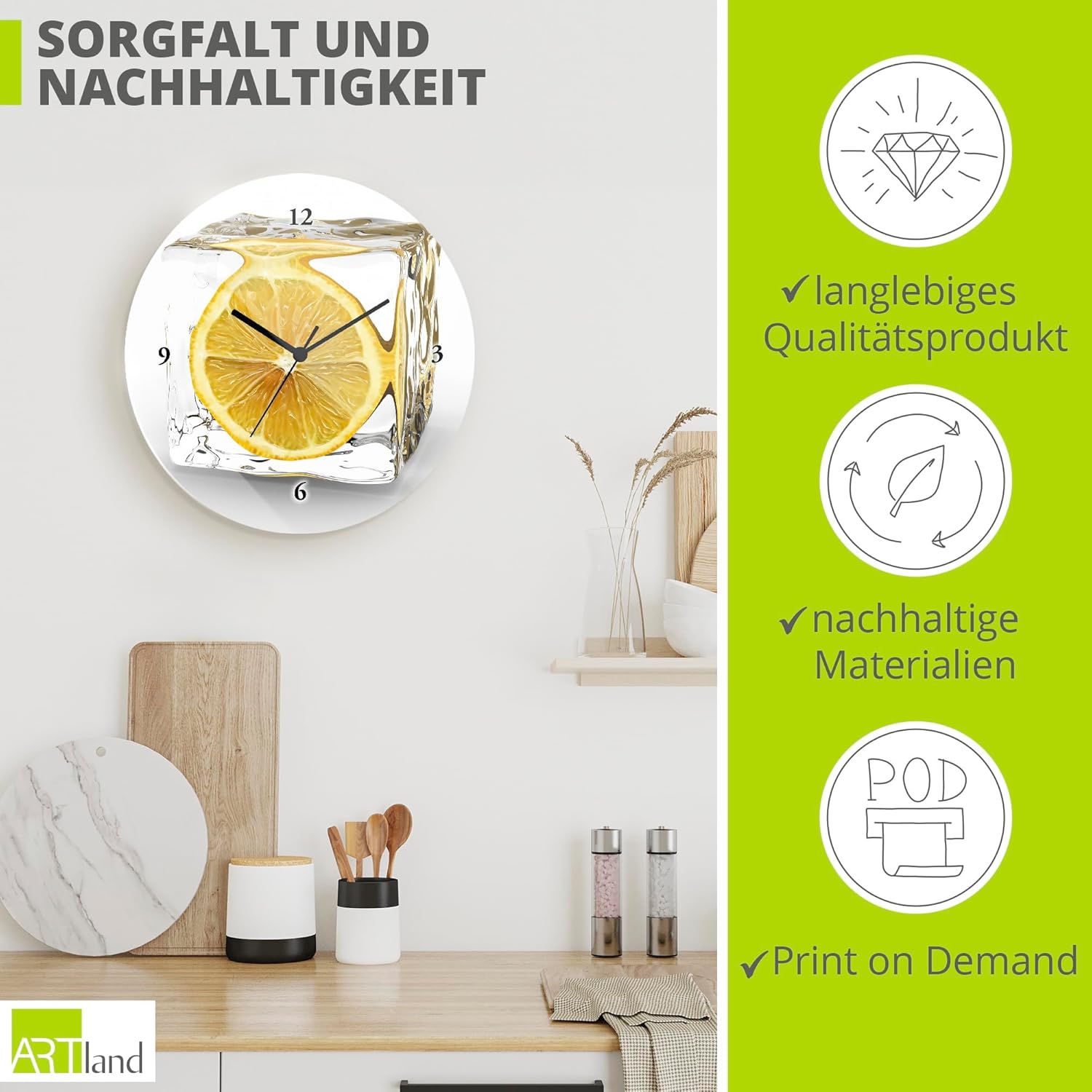 - DRUCKQUALITÄT: Das Wanduhrbild ist vorderseitig mit UV-beständigen Farben bedruckt, die nicht nur für ein farbechtes Druckergebnis sorgen, sondern auch geruchlos und langlebig sind
