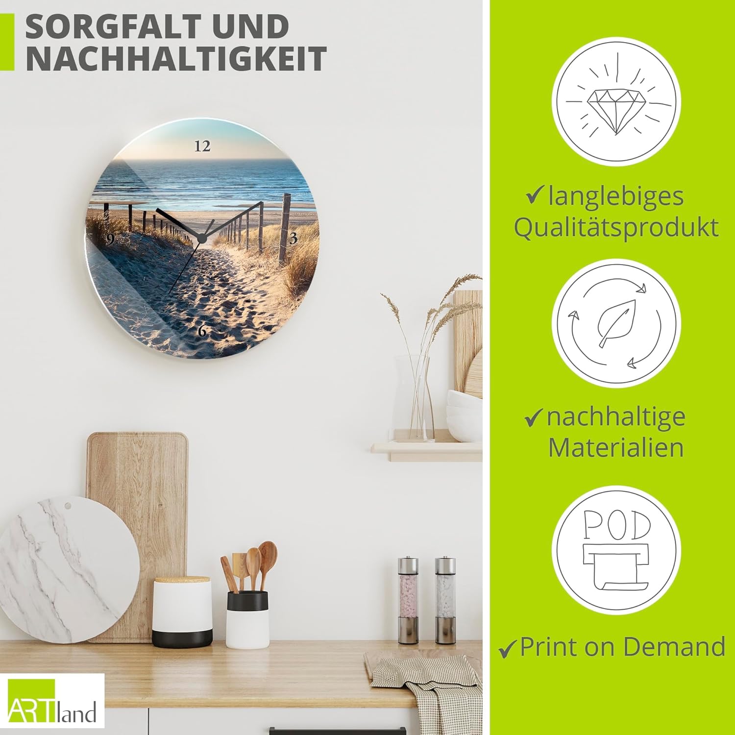 ARTLAND Wanduhr ohne Tickgeräusche Glas Quarzuhr Ø 30 cm Rund Lautlos Strand Meer Düne Nordsee Urlau