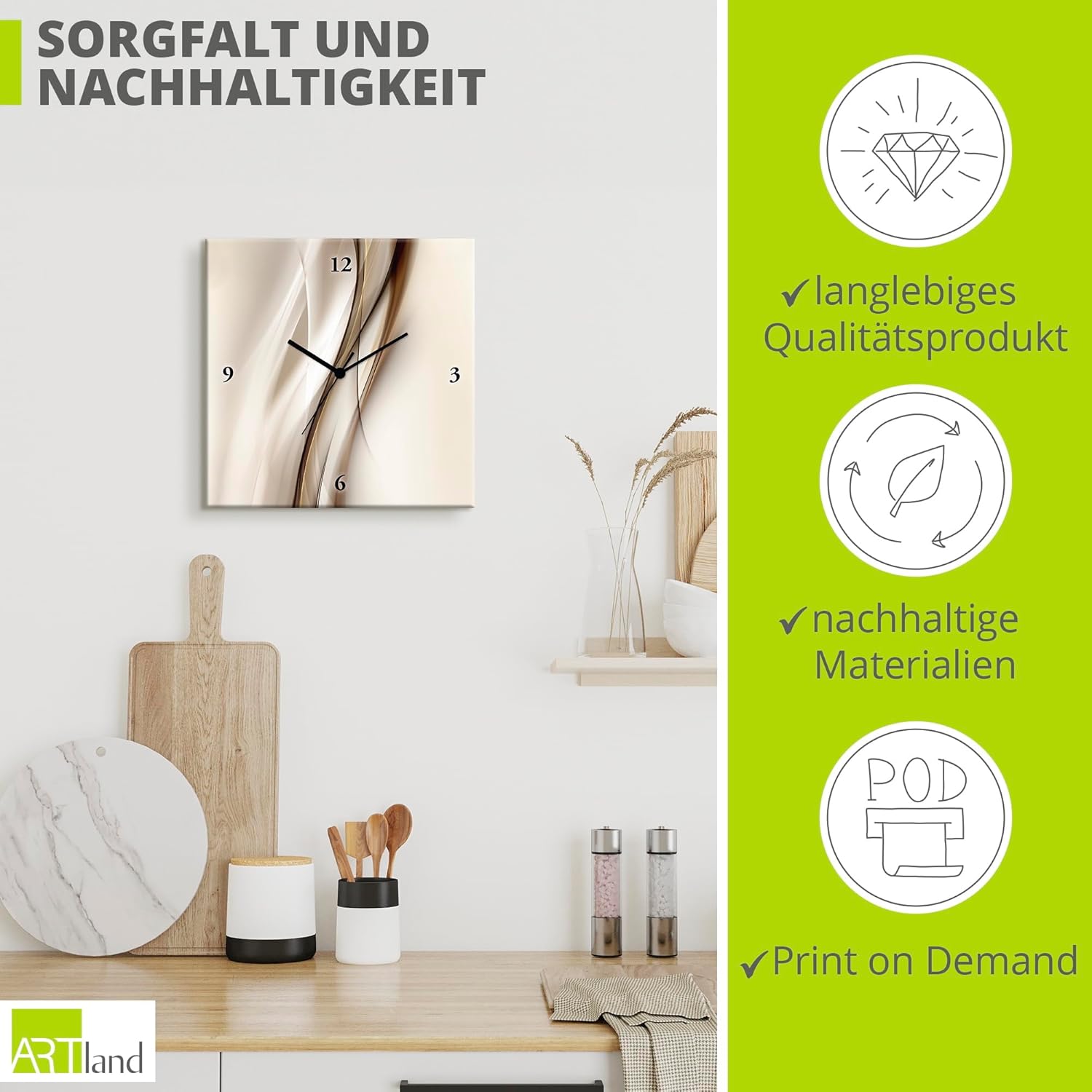 - DRUCKQUALITÄT: Das Wanduhrbild ist vorderseitig mit UV-beständigen Farben bedruckt, die nicht nur für ein farbechtes Druckergebnis sorgen, sondern auch geruchlos und langlebig sind