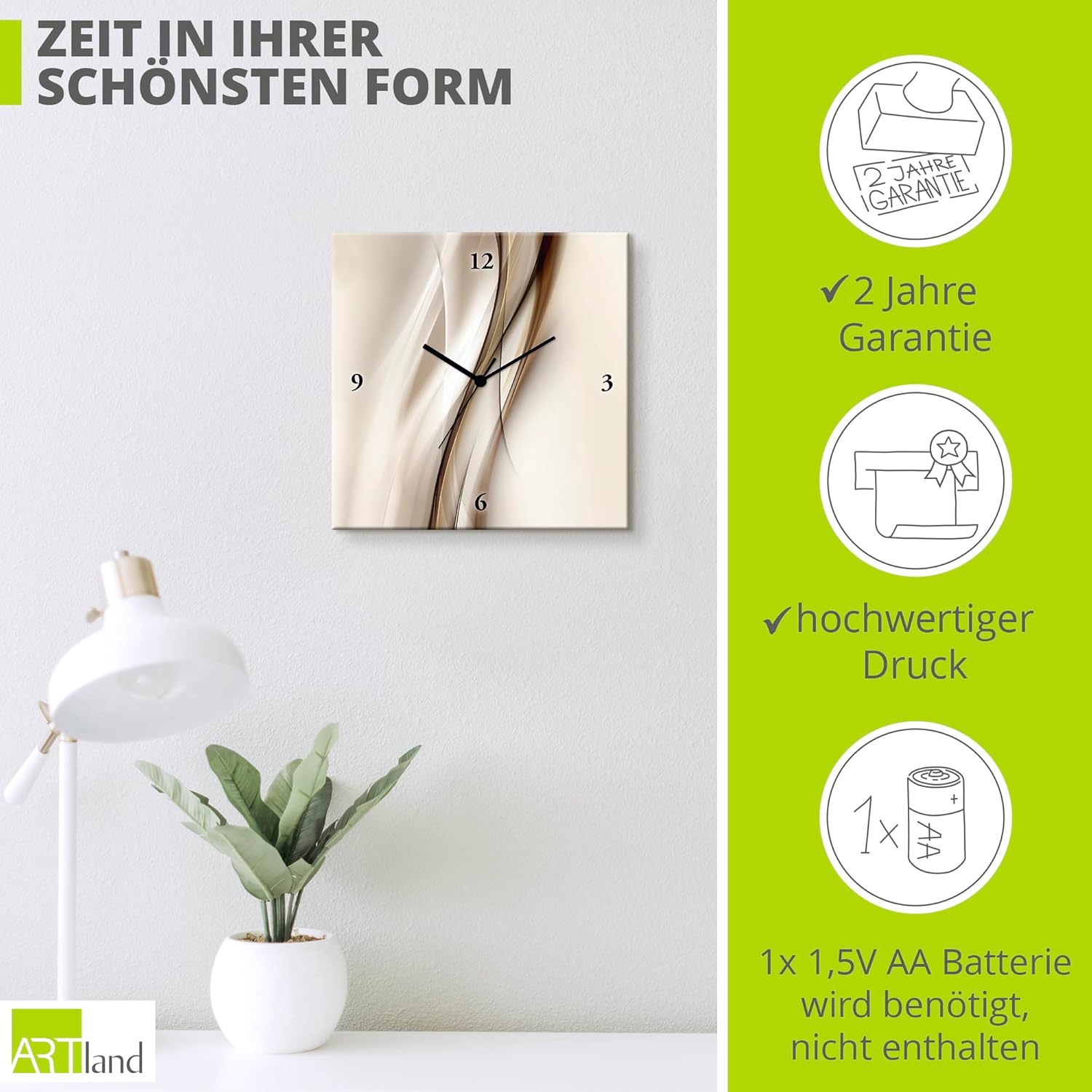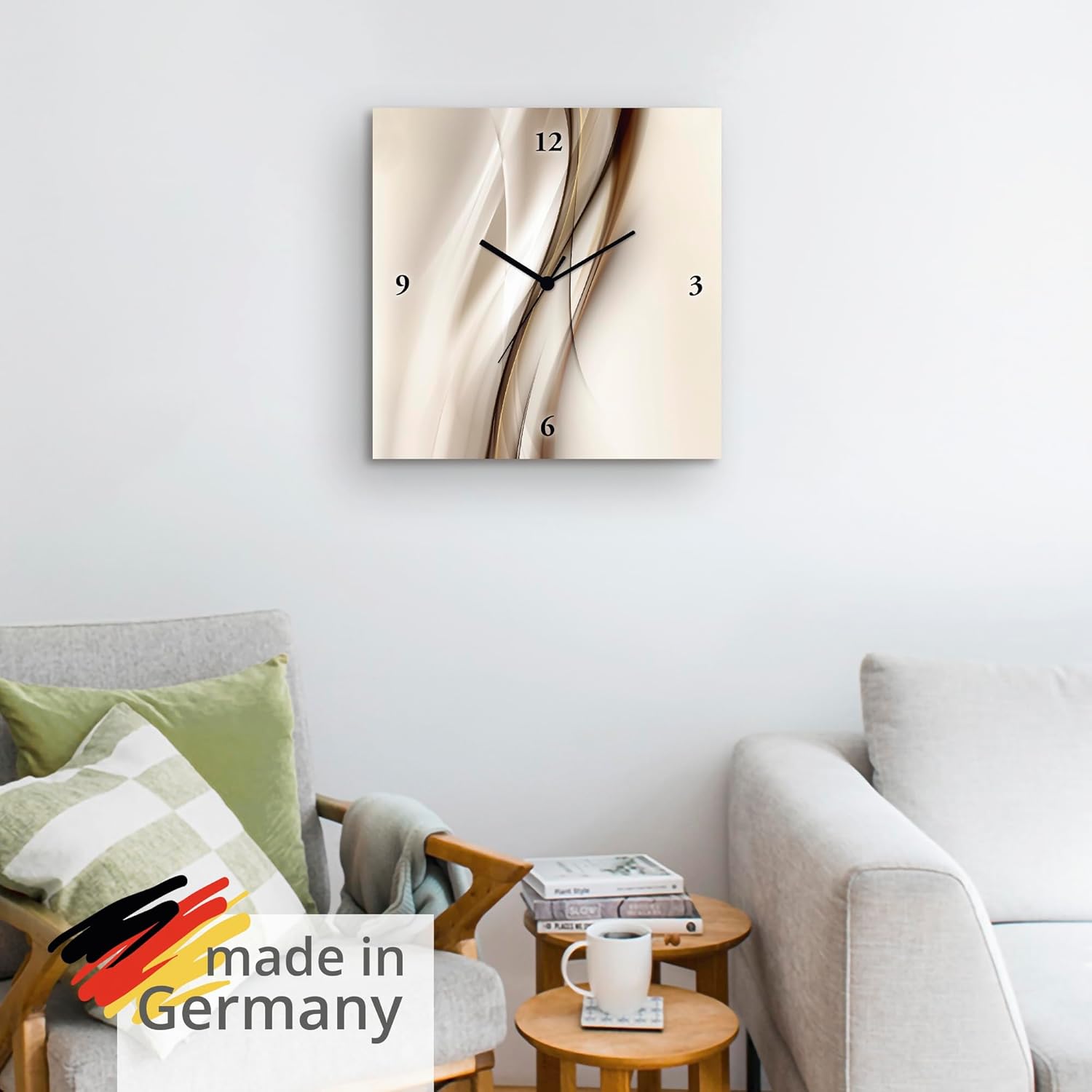- VERWENDUNG: Unsere analoge Wanduhr auf Leinwand im Modern Look eignet sich für alle Wände in Wohnzimmer, Schlafzimmer, Büro, Flur, Küche oder Esszimmer - Fertig zum Aufhängen geliefert