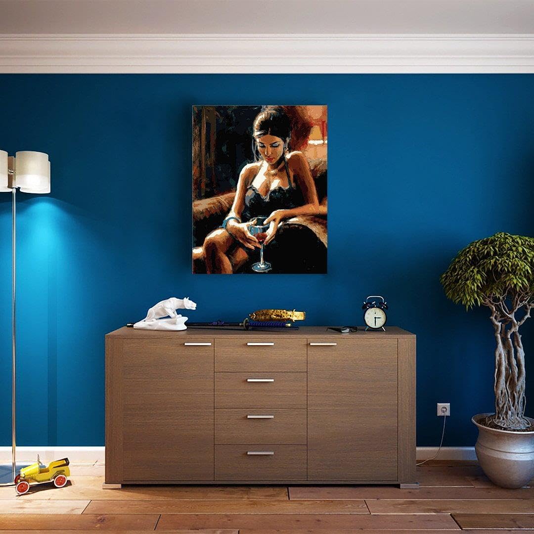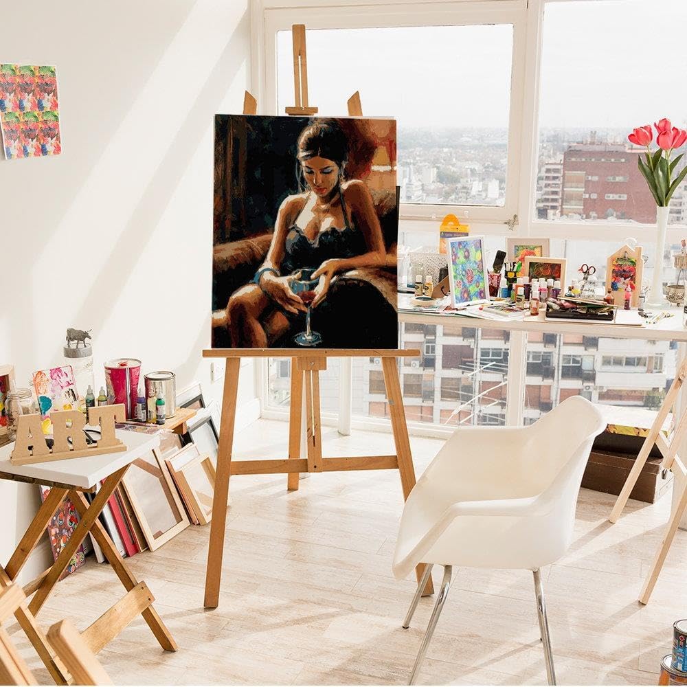 Artnapi Malen nach Zahlen Erwachsene mit Rahmen | DIY Handgemalt | Mädchen mit Glas | Kit für Anfäng