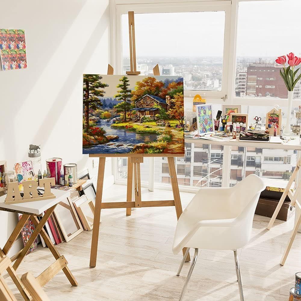 Artnapi Malen nach Zahlen Erwachsene mit Rahmen | DIY Handgemalt | Waldhäuschen am Fluss | Kit für A