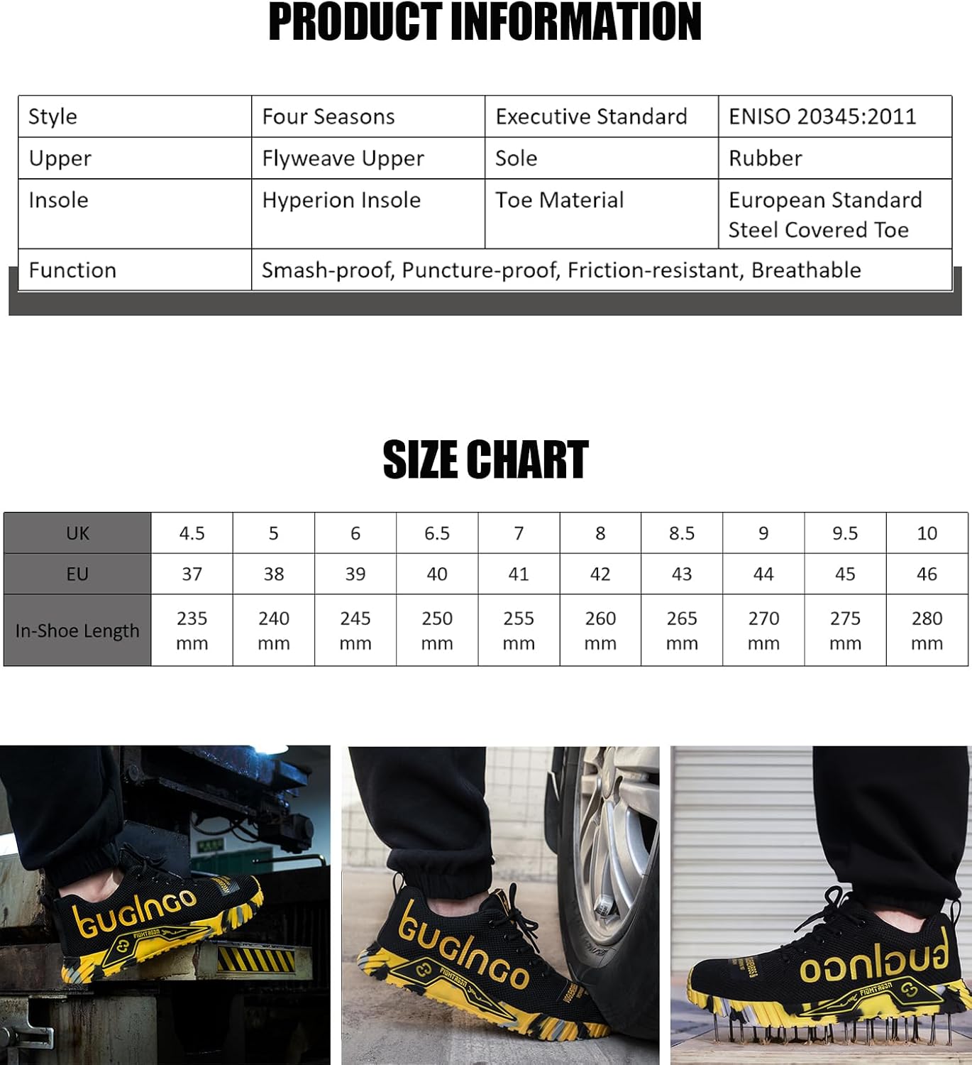 • Multifunktionaler Schutz: Sicherheitsschuhe damen leicht können zu verschiedenen Anlässen eingesetzt werden und haben Funktionen wie z.B. schlagfest, stichfest, stossfest und verschleissfest.