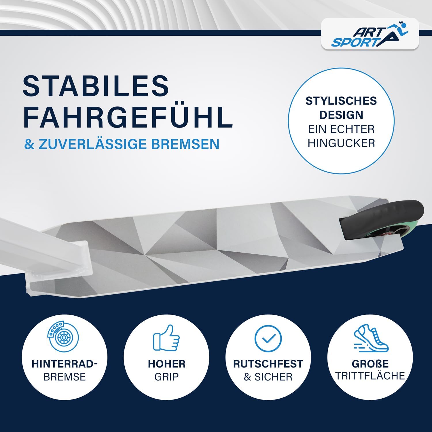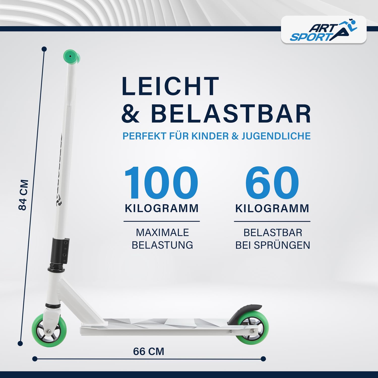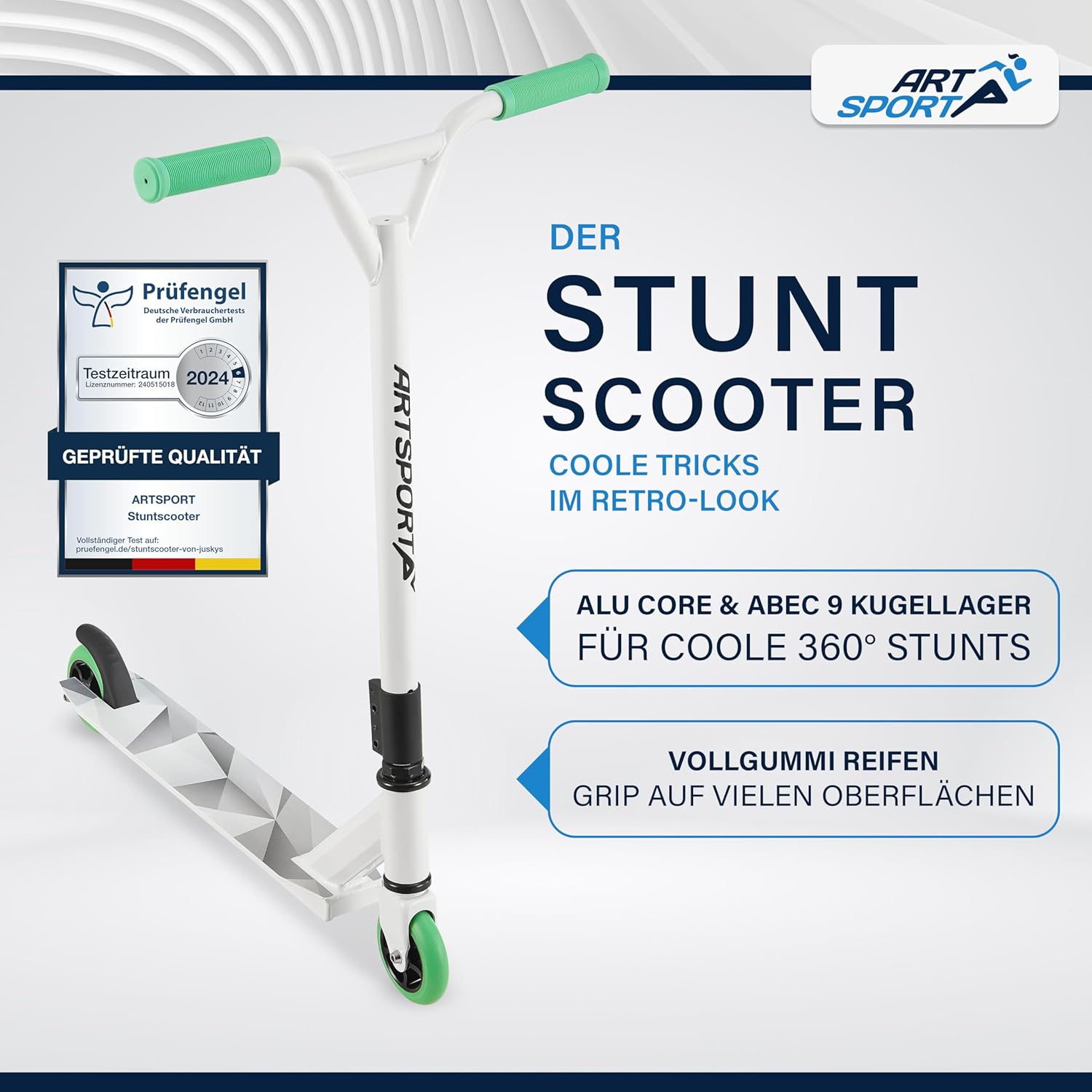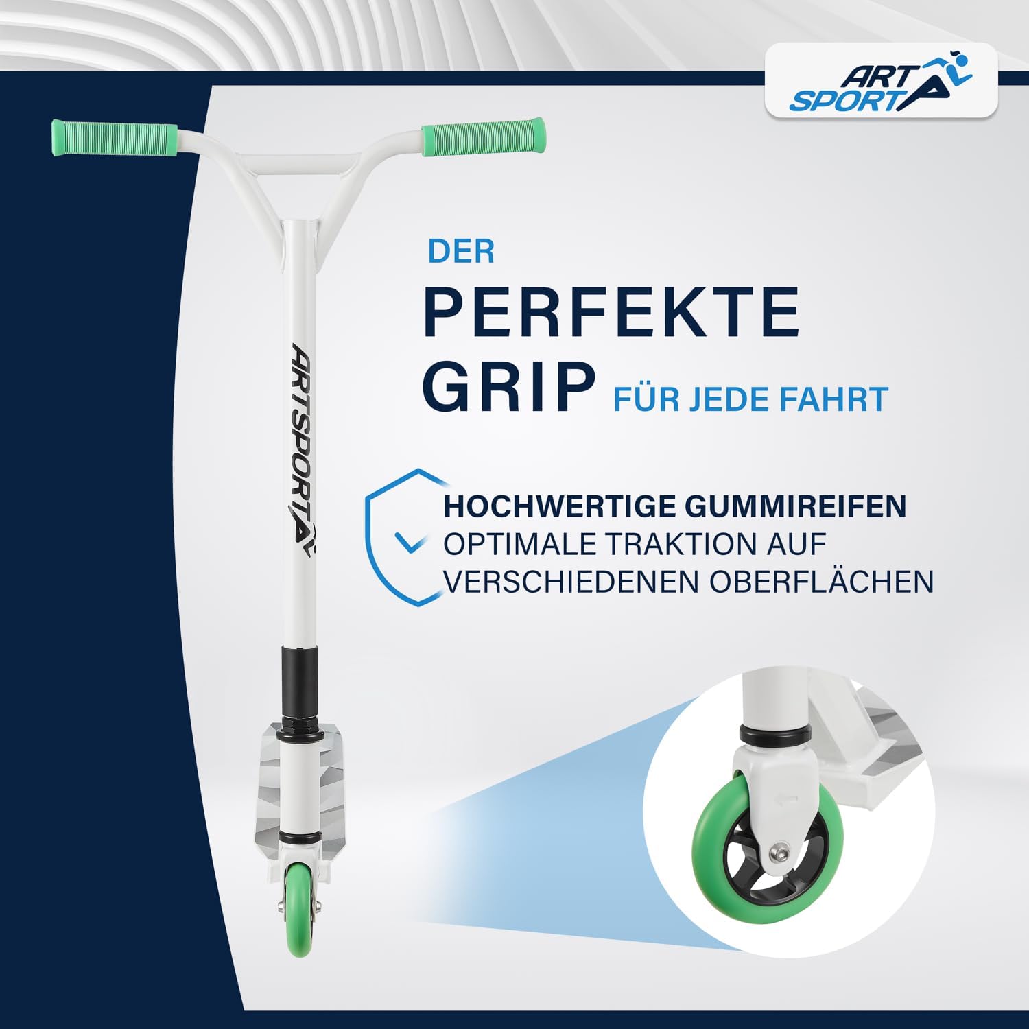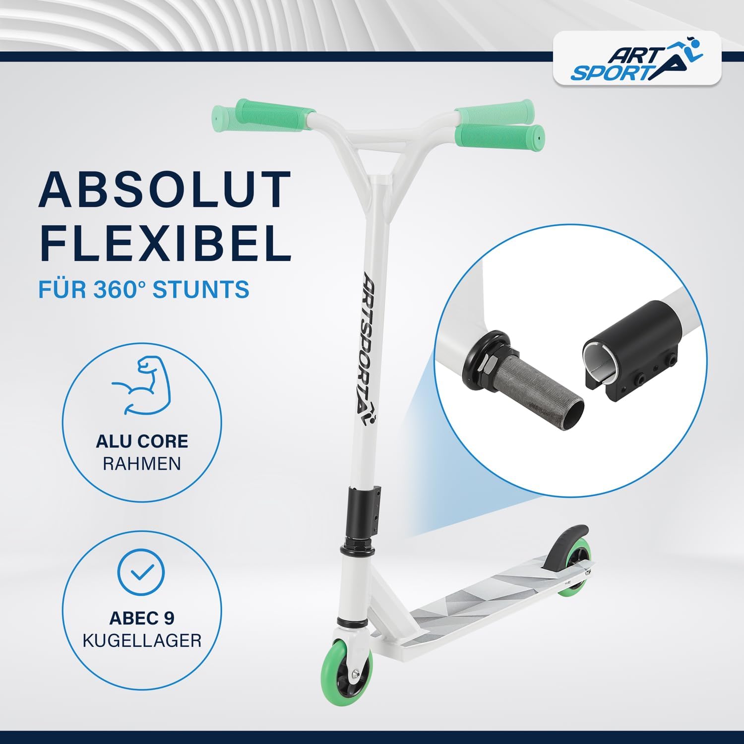 ArtSport Stunt Scooter mit 360° Lenkung, ABEC 9 Kugellager, 100 mm PU Räder & Griptape, Funscooter f