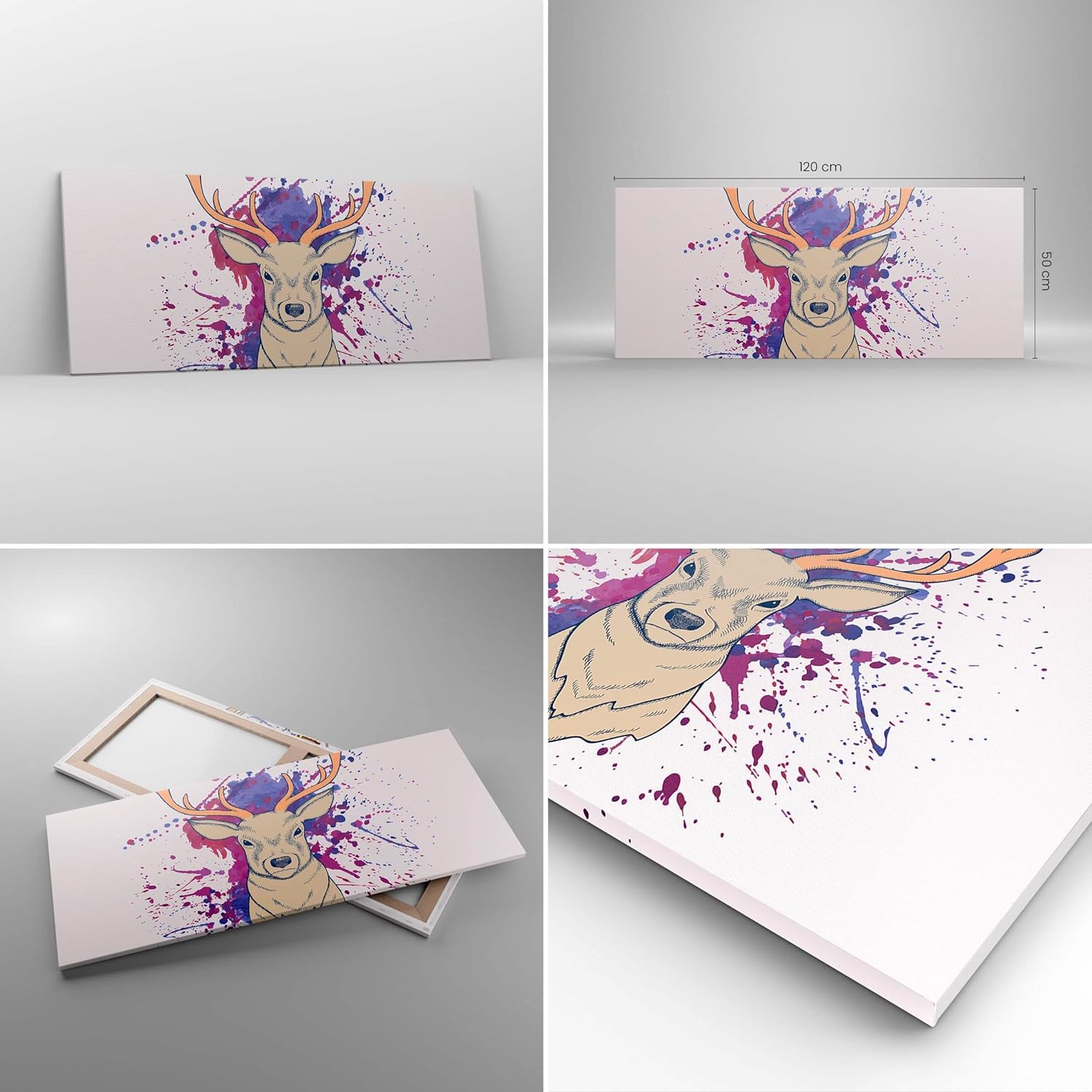 Wandbilder Dekoration Wohnzimmer Hirsch Abstraktion Panorama Bilder auf Leinwand 120x50cm Leinwandbi