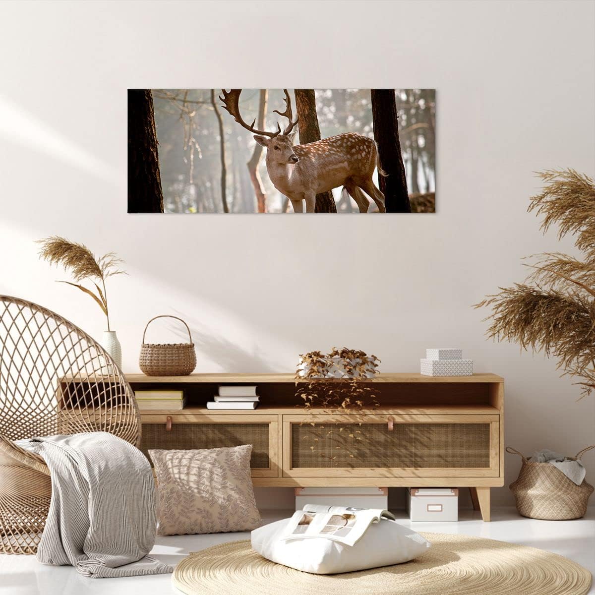 Wandbilder Dekoration Wohnzimmer Kitz Hirsch Tier wild Panorama Bilder auf Leinwand 120x50cm Leinwan